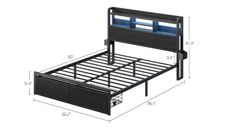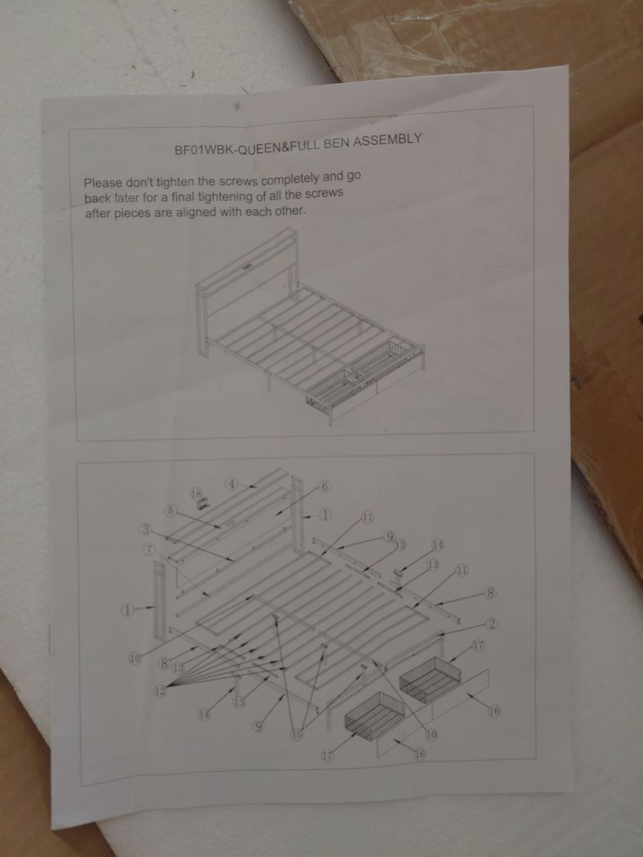 VenmoNew in box. Furnulem Queen Bed Frame and Headboard with Storage. Metal platform bedframe. Dark Brown.