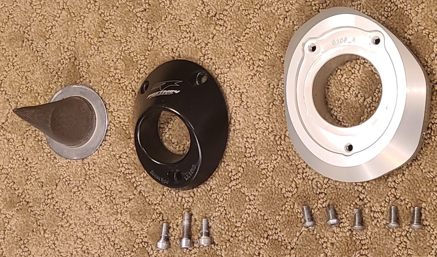 VenmoFastway spark arrestor end cap that was used on a 2018 KTM 350 XC-F. It quickly and efficiently converts the stock muffler into a USFS-approved spark-arrested muffler. When the spark arrestor screen isn't needed or is to be cleaned, it can easily be removed via the three machine screws on the end cap. Each end cap is machined out of solid aluminum and anodized with a protective finish. The end cap is precision-engineered, manufactured, and assembled in the USA from 6061 billet aluminum. MSRP is $213.30. Buyer is responsible for checking fitment. Will fit some 2013 models, most 2014 to 2018 models, and some 2019 models of KTM and Husqvarna. See https://fastway.zone/product/pmb-01-3106/ for exact fitment. Excellent condition, like new. $20. Firm on price. No trades, deals, etc. Cash or Venmo only. Message via KSL app only.