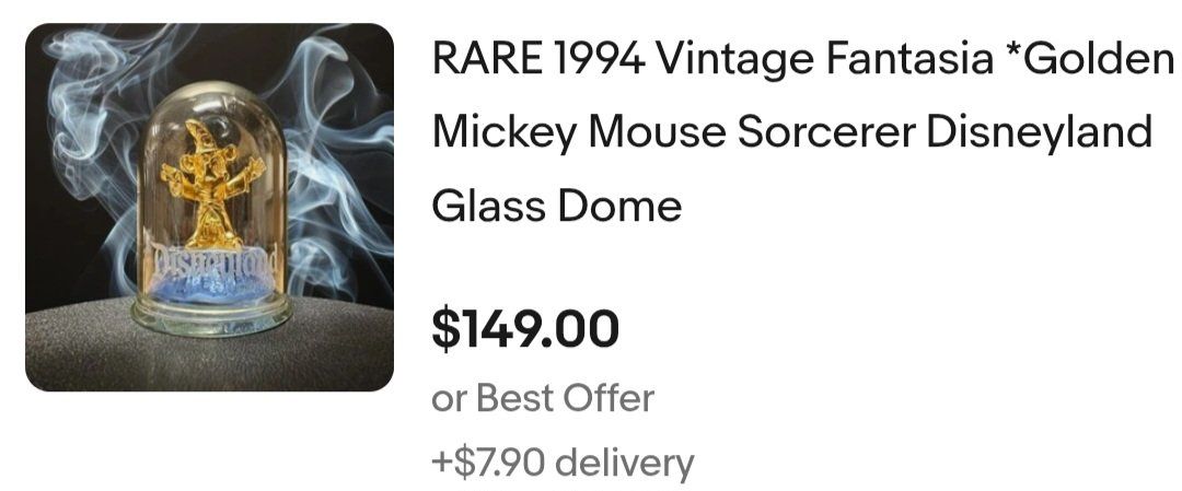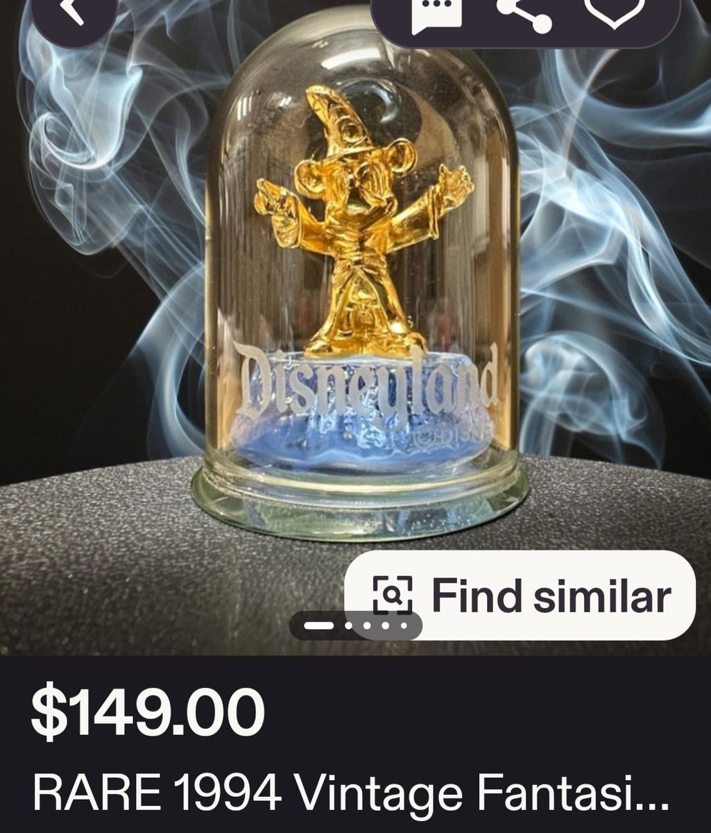 PayPalRARE Vintage 1994 Disney Fantasia Mickey Mouse Gold Sorcerer Glass Dome Figurine