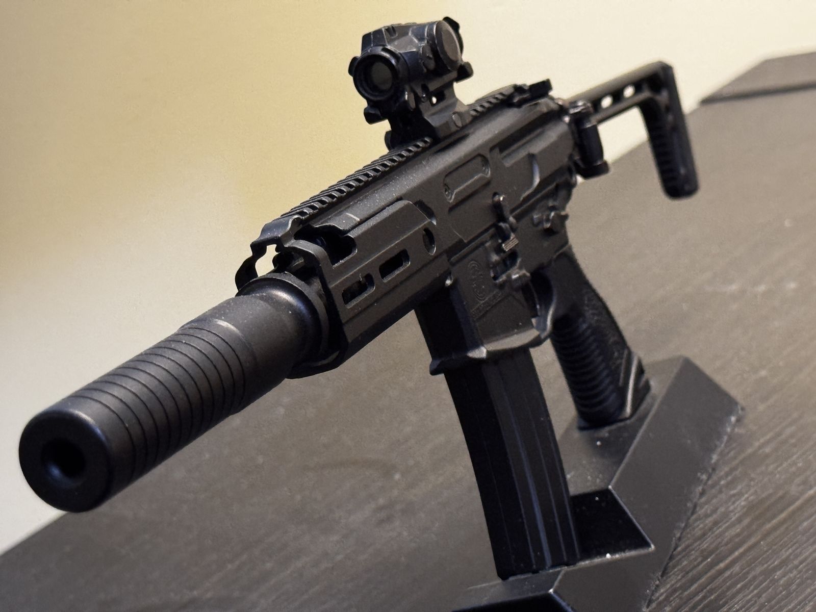 ApplePayThese are my goat gun collection, an sig MPX, a Barrett .50, and an AK47. These are metal and harden polymer models from the Utah company Goat Guns who make replica, high quality toy and decoration pieces that are very realistic!