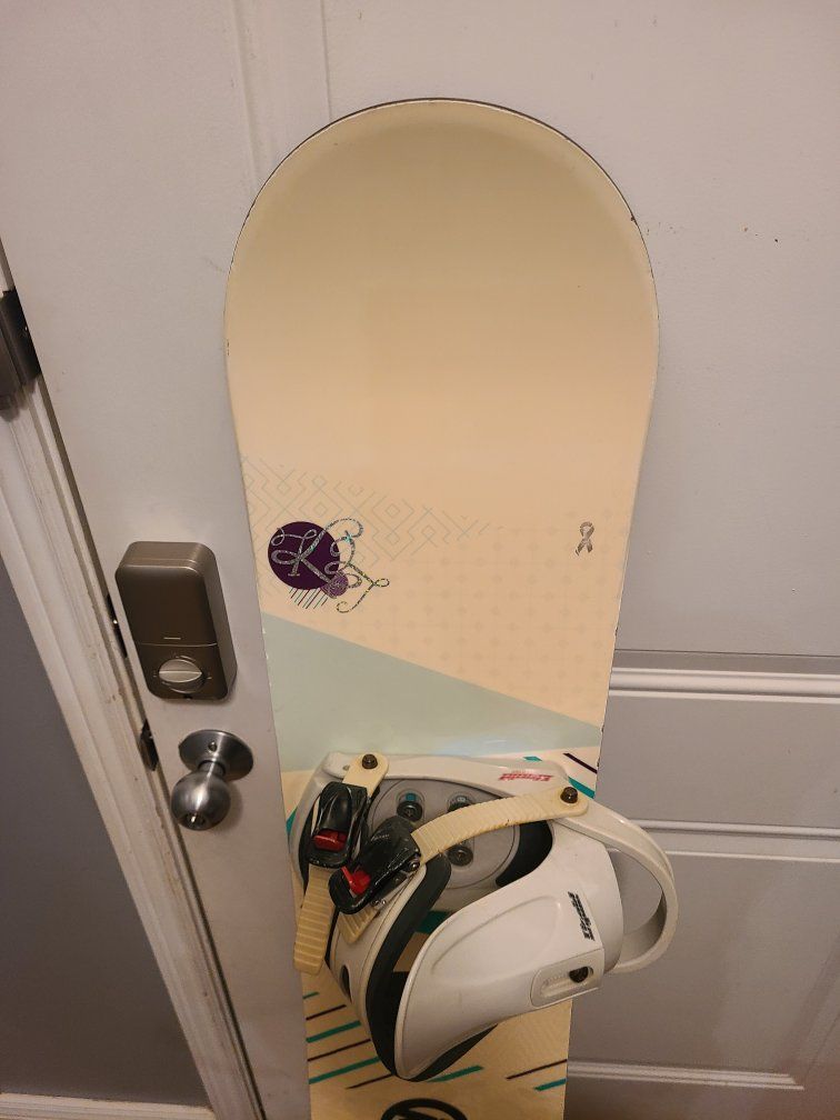 149cm K2 Luna ladies snowboard. comes with adjustable bindings.