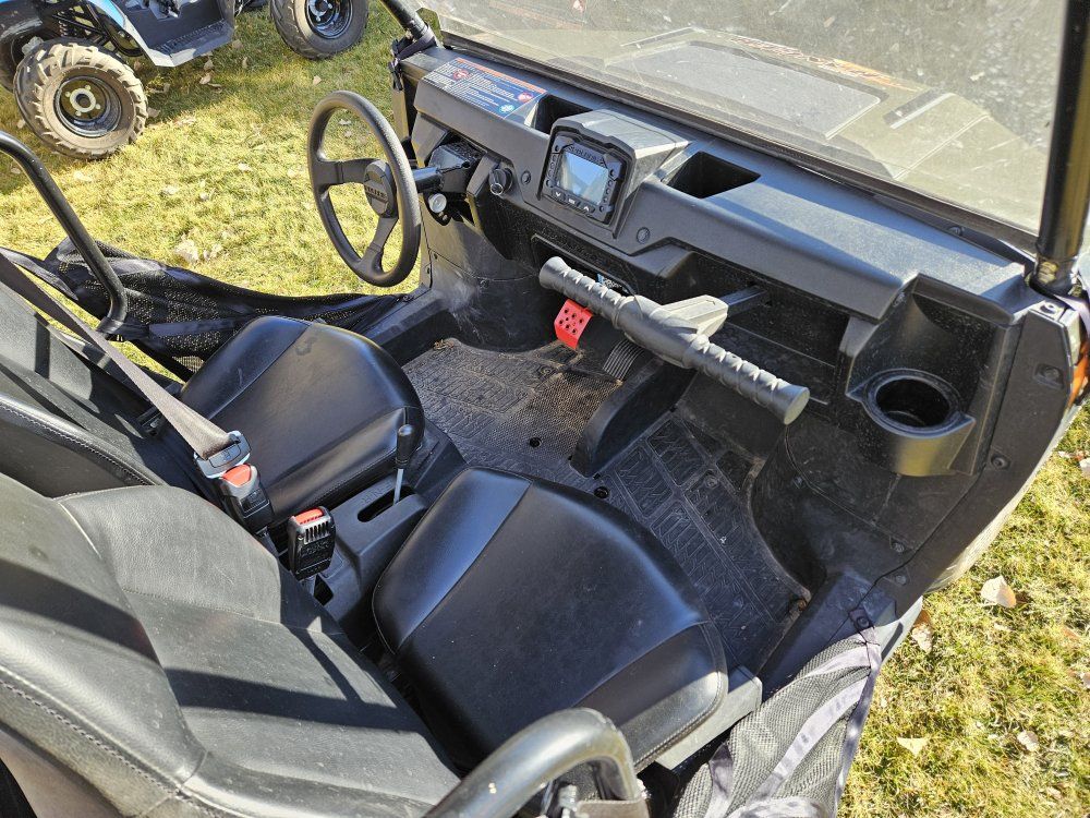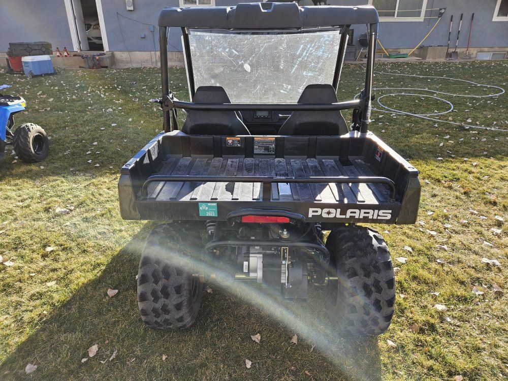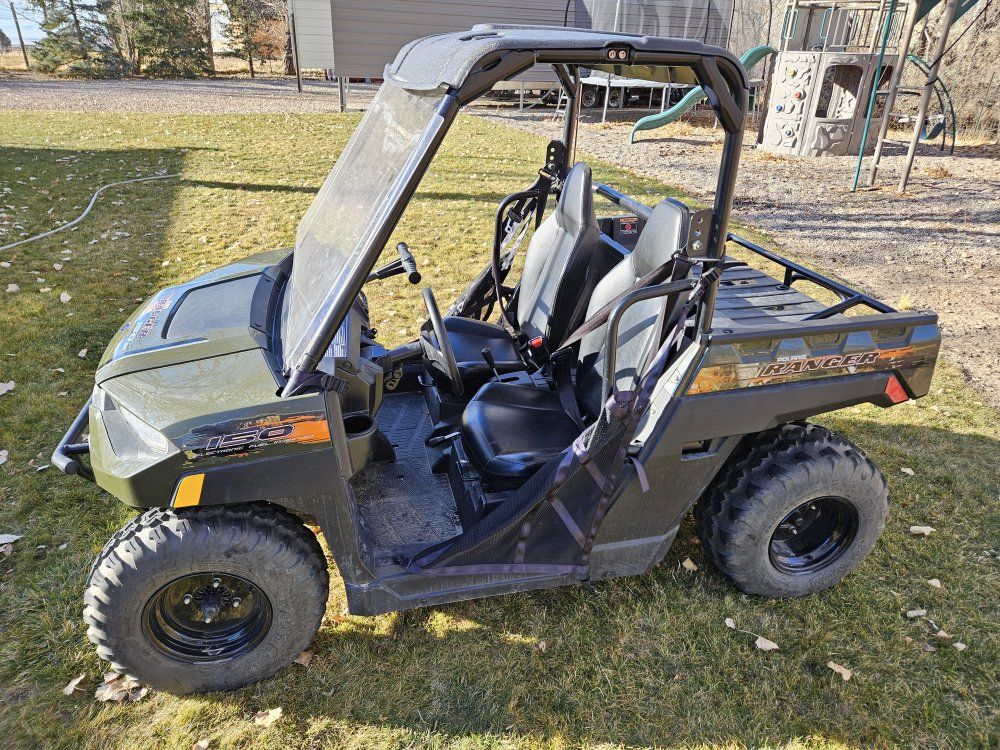 daughters just don't ride as much as I hoped they would. only 213 miles. can control speed limit from display screen. forward neutral reverse and parking brake. front windshield. I changed it the sprocket from 16 tooth to 14 for more get up and go from stopped. also new battery 4 months ago. head/tail lights work runs good fun little machine easy for kids to drive longer as their thumb doesn't get tired. $5000 title in hand