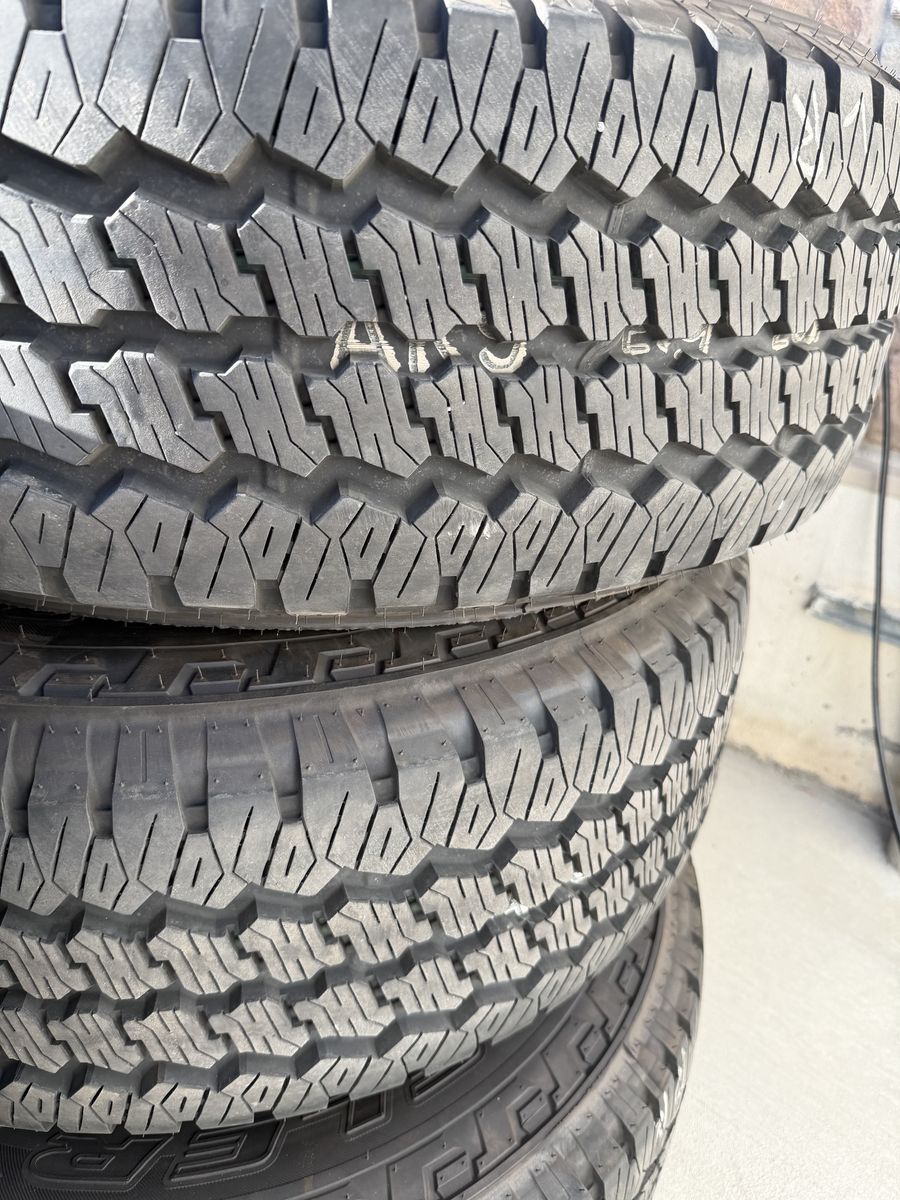 Venmo500 miles on Bridgestone dueler at. 275/70 R18. Caps and lug nuts included no patches or plugs. Factory wheels.