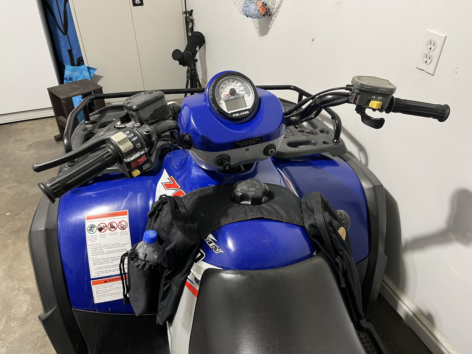Need to sell because I'm having a baby soon. I bought this last year for the hunt and only got to use for a couple of weekends. Very clean. Has a ton of power. Custom back seat that I made rain/dust proof myself. 4x4 works great New battery Independent suspension, axles are all in great shape Fresh oil change 2 keys with new lanyards Lights work great Comes with original manual and Polaris weather cover Title in hand.