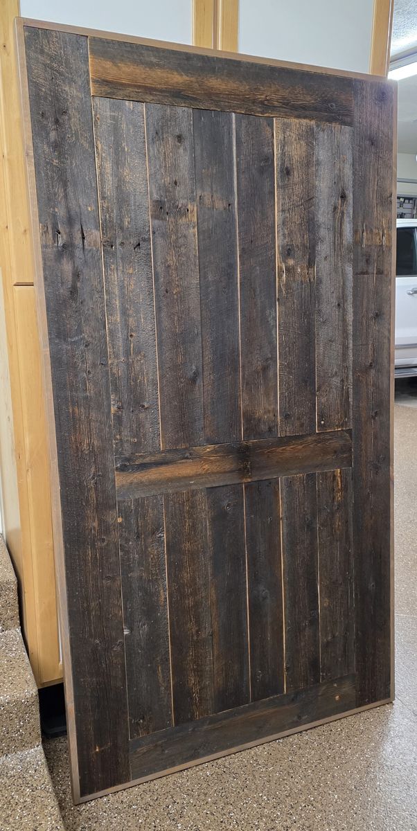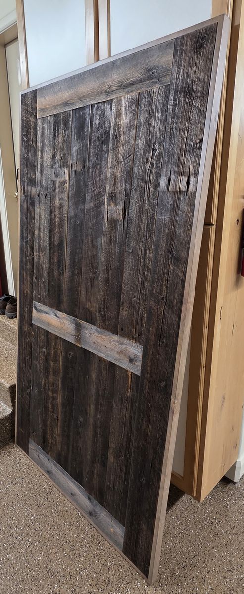 VenmoReal Barn Wood "Barn Door" This is a custom made door which my client changed their mind and went with a different style door, This door has a maple wood veneer back with alder trim sides. The door size is shown in the pictures and is 79 15/16 inch tall, 43 15/16 inch wide, and 1 9/16 thick. The door has not been install befor, and can be hung as picture is shown or fliped upside down. It has real 3/4 inch thick barn wood installed on the face. the maple back and alder sides have been lightly stained and the entire door has been sealed with a clear coat. I am asking 475.00 for the door but will look at any reasonable offer. the door is valued at over 900.00