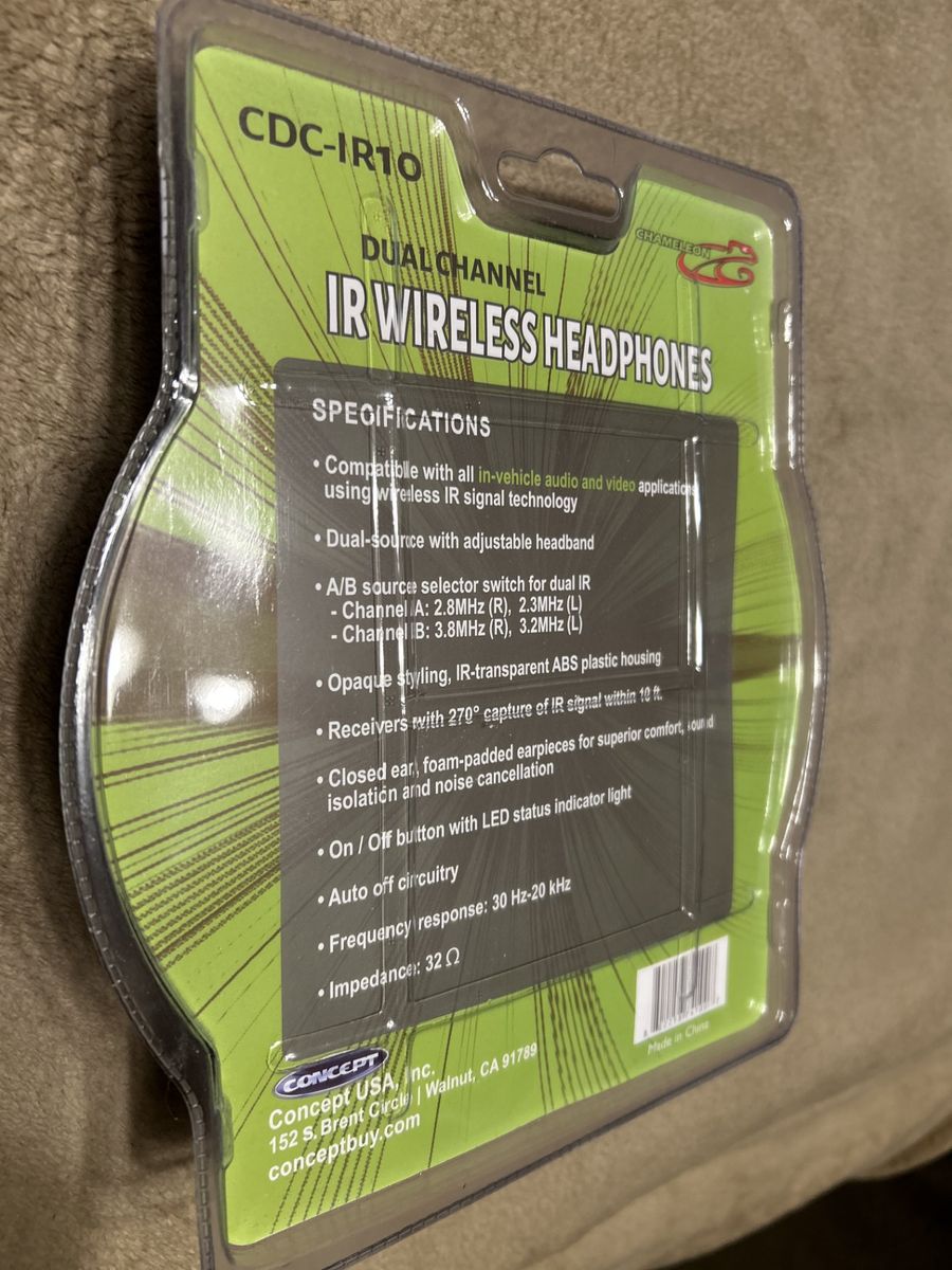 Chameleon CDC-IR10 headphones. Brand new! Never opened. Dual channel IR wireless headphones for your vehicle's audio and video system. I have six of these for sell and would like to sell them all together. $10 each or $55 for all six. Text is best. 8.0.1.2.3.2.6.7.7.5.
