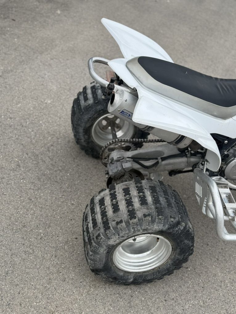 ApplePayStarts right up and runs great. Upgraded intake and exhaust. Very powerful and fast. Clean title in hand. 450cc 3500$ obo