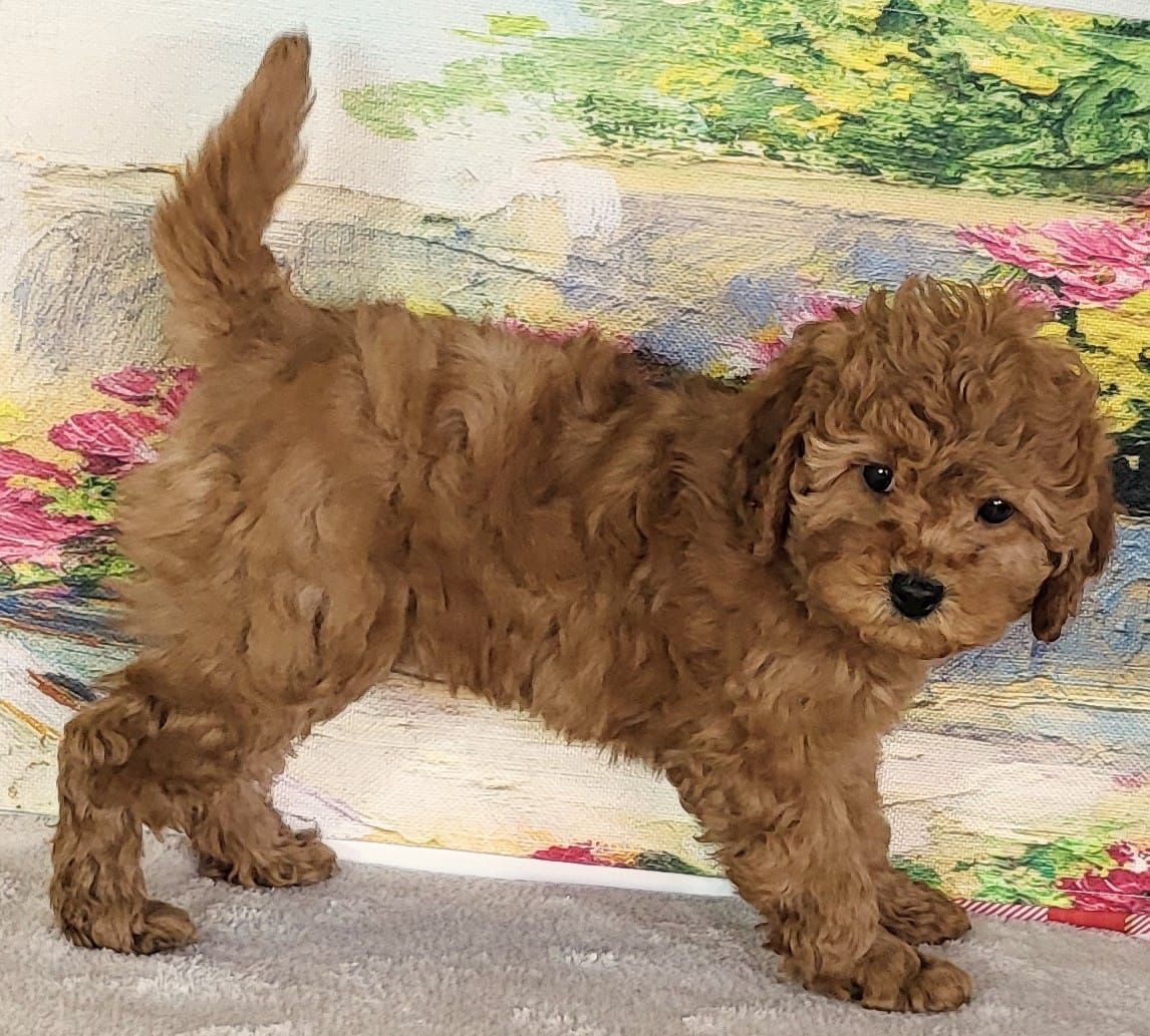 I’m a gentle, loving pup who prefers to be near my people, whether I’m following along during your daily routine or curling up to relax once I feel settled. I’m expected to weigh around 19–21 lbs when fully grown, making me an ideal size for apartment living or any type of home.