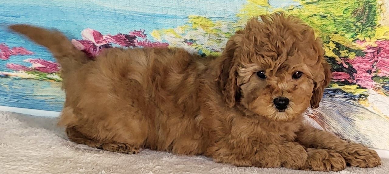 ZelleHi, I’m Jade—a micro Goldendoodle with a soft, curly coat and a warm, affectionate nature.