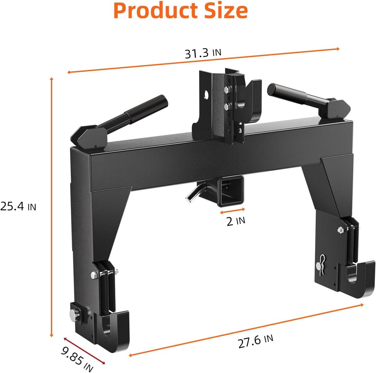 About this item - Built to LastThe three point quick hitch category 1 is made of heavy duty steel construction. The triangular design ensure stability of the trailer hitch receiver. The trailer receiver is coated with high-quality black powder finish to prolong the product's lifespan and keeping it in prime condition, more durable, rust-proof and corrosion-proof.