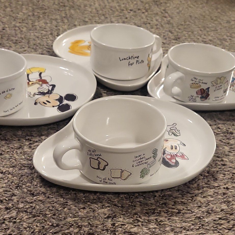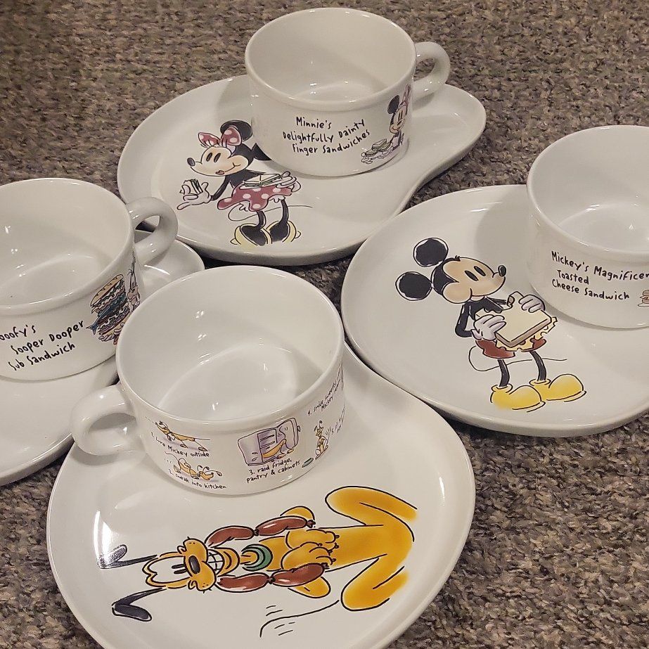 Rare Mickey, Minnie, Goofy, Pluto Plate & Mug Set Sandwich Recipes.