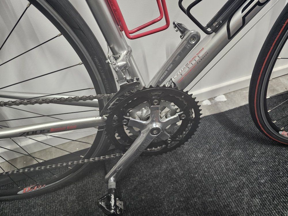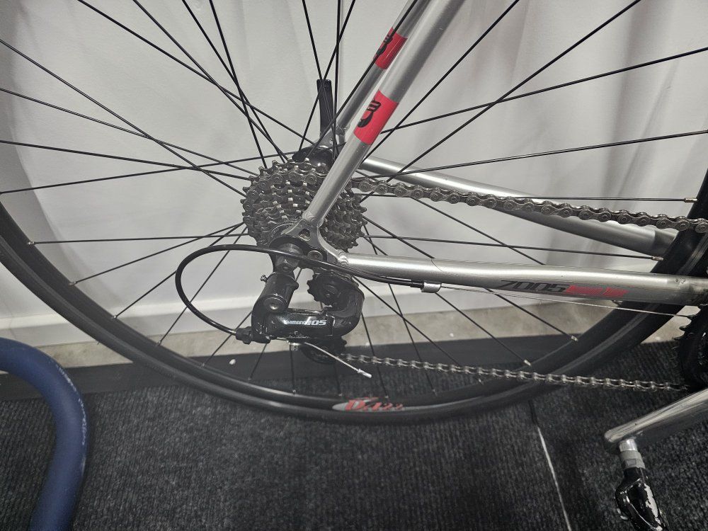 This bike is in near perfect cond. 3x9 gears, STI Tiagra shifters, and front derailer, 105 Shimano rear derailer. Has great tires, new bar tape. Carbon fork. Chain stripped and cleaned and lubed. Bike is tuned and brakes are perfect. DA22 wheels and trued. Also put on a Graphene protectant on paint. When you buy the bike i will fit it to you. I am a bike mechanic. Will sale for $275.00 Call or text John at 801-404-8459