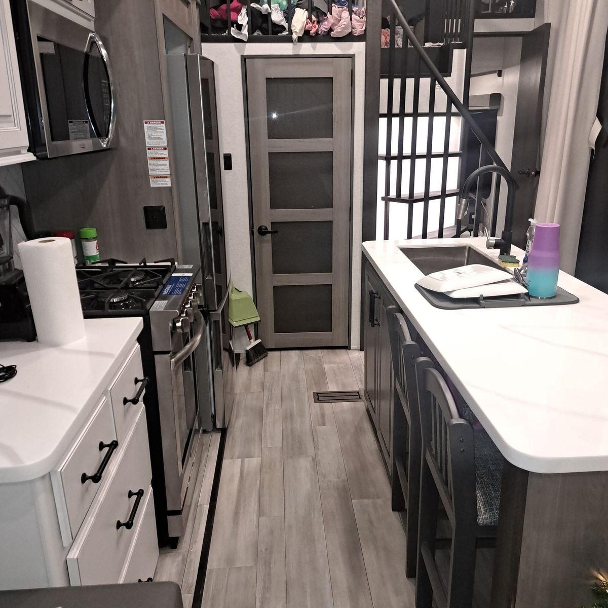 Selling for $78,000. Sleeps about 8 Includes 2 lofts. An L shaped couch makes into a bed sits in front of a TV in a fireplace. Nice pantry to hold canned goods or other storage. Bathroom has nice sized shower with double sinks and washer/dryer. Bedroom with king sized bed, closet, and built in dresser. 39 ft without including the tongue. My daughter enjoyed living in it until we could build our house. Need to sell it so I can get qualified to build.