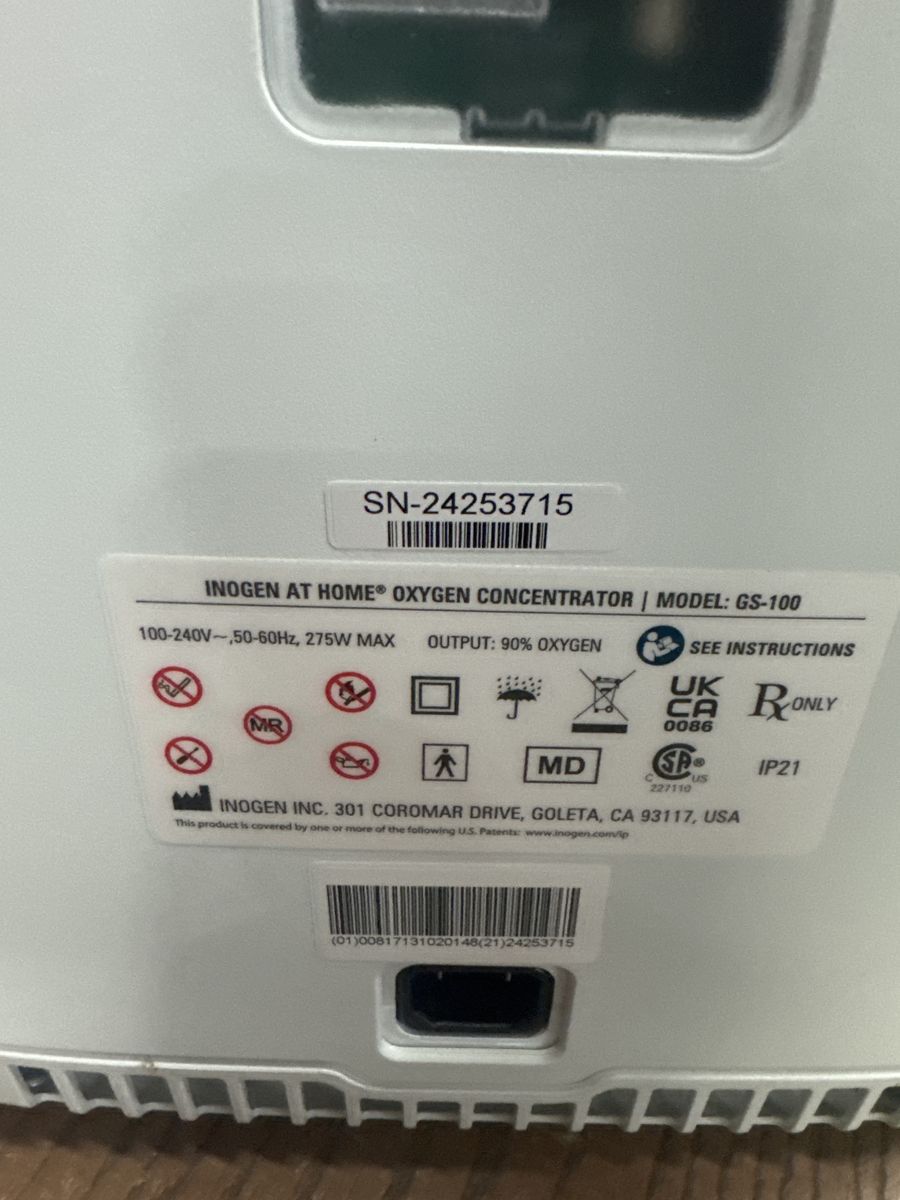 VenmoThis Inogen concentrator is a smaller model than most home concentrator. It goes up to 5 L and only has 349 hours on it and has lots of life left. add a humidifier bottle.