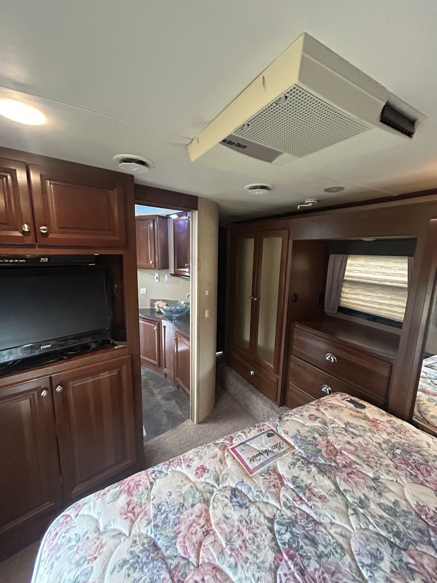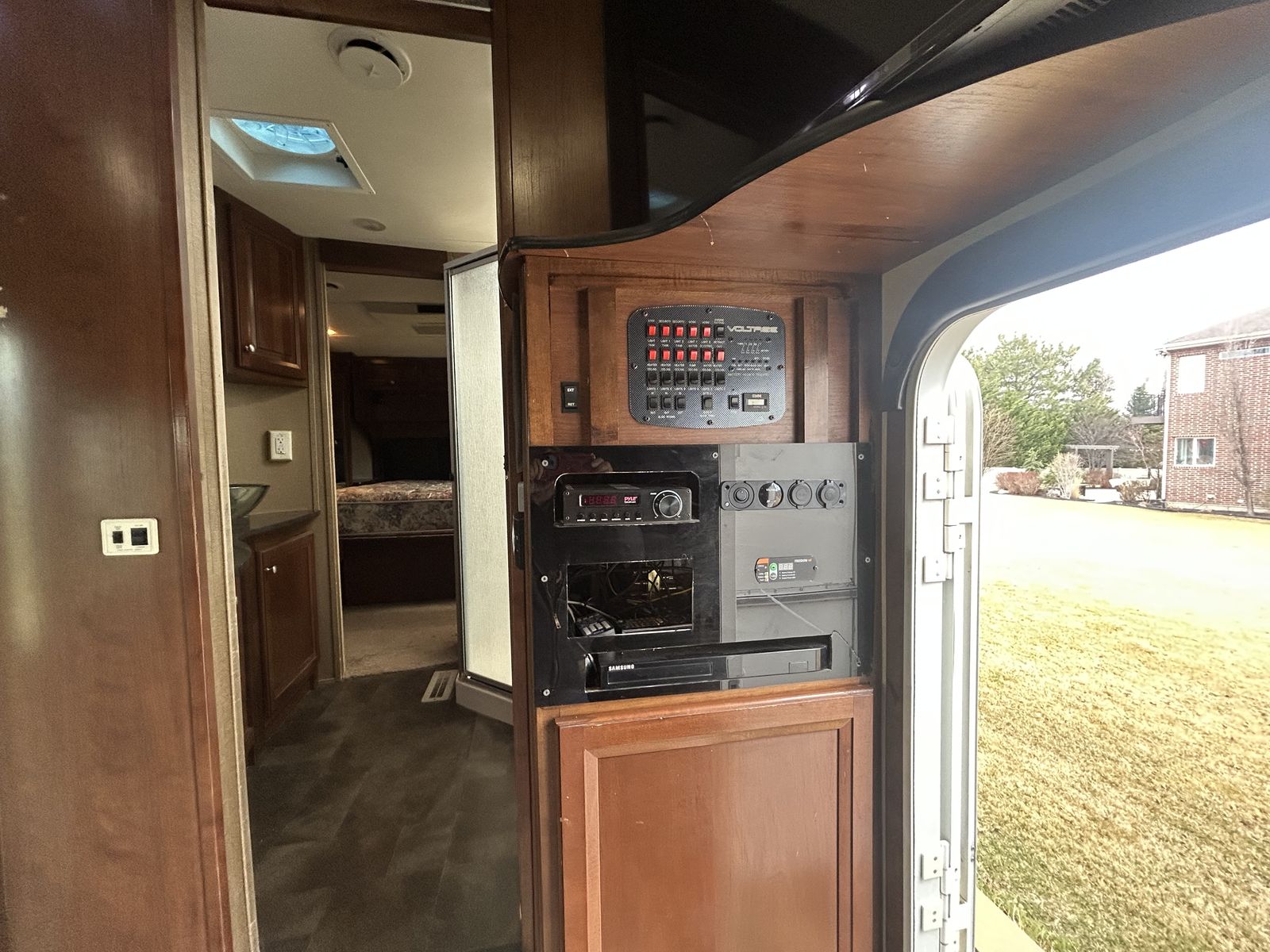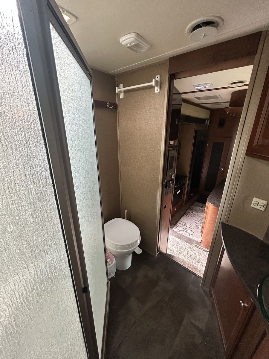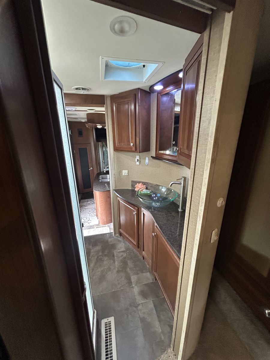 2013 voltage toy hauler, fifth wheel luxury model with 3 slides, 2 bathrooms 12 foot garage, auto level, generator, 150 gals fresh water, new main TV. Has 4 tvs double side fridge, 43 feet long rear receiver to pull another trailer, 3 axle with all new brakes and springs. Has back patio area with gates 2 electric auto awnings both in great shape. Real wood cabinets , winter ready sleeps 8-10 with back 2 queens beds. Pulls great and is in good shape. 30 gal tank for generator and 30 gal onboard fuel station for toys. If your looking for a bondocking trailer this is the best unit out there, tons of water, sewer, generator, solar panels, fuel, and lots of storage.