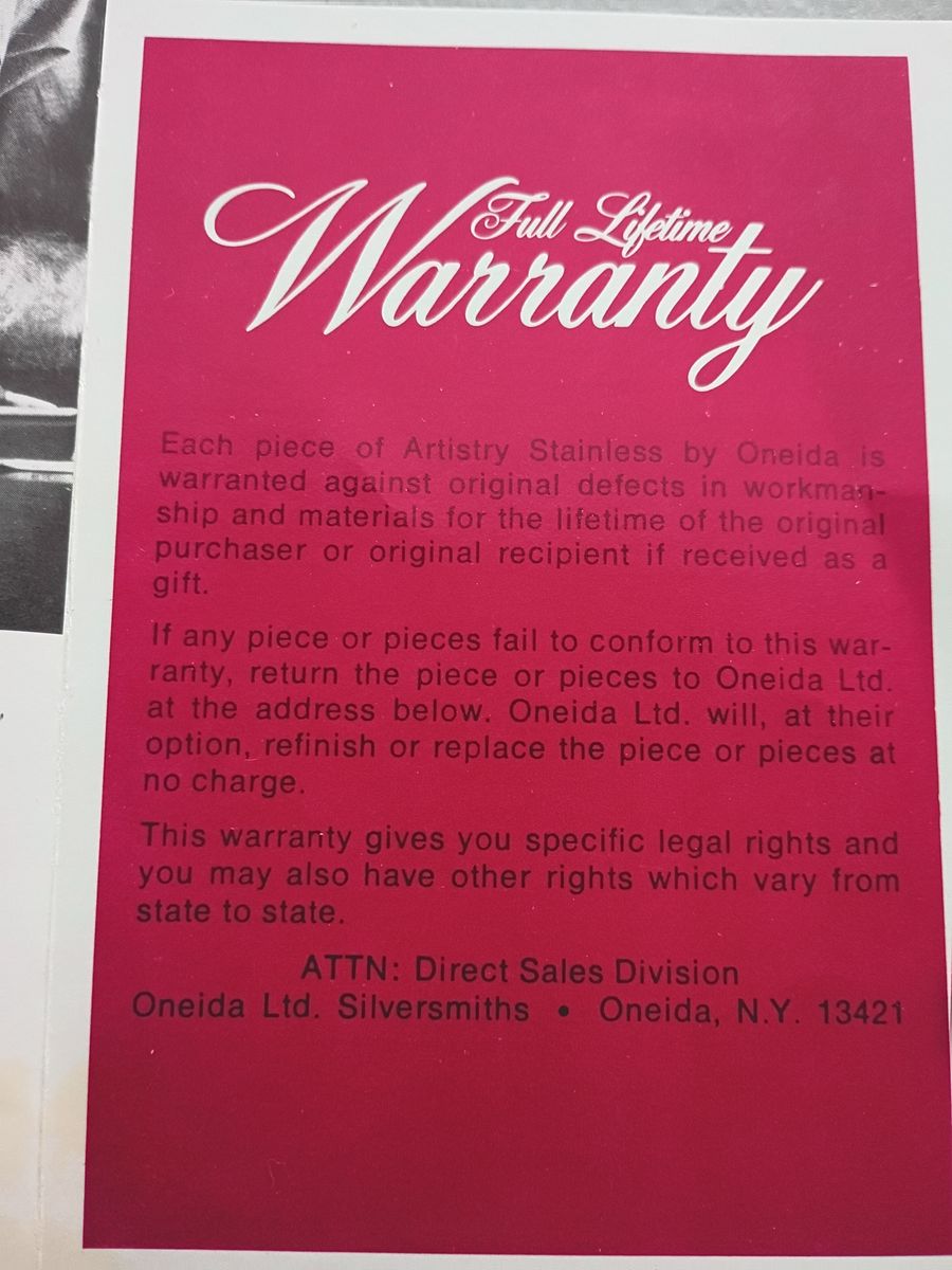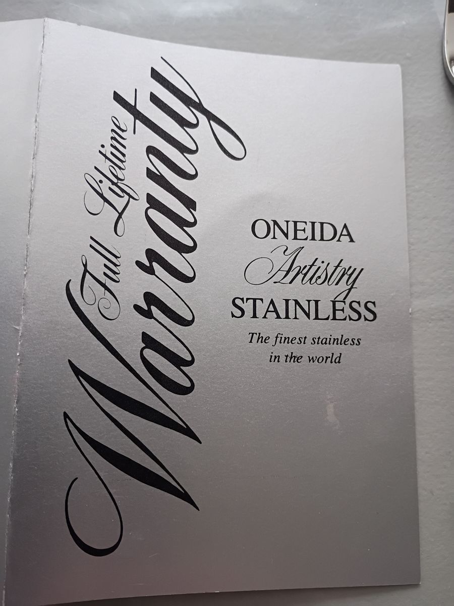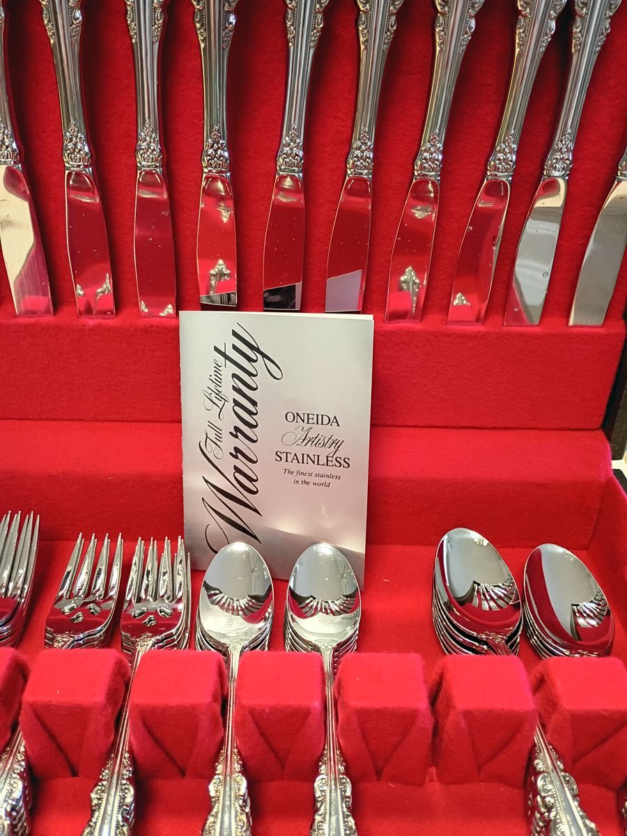 VenmoHeirloom Oneida Artistry Stainless USA Service for 12. Very beautiful. Excellent condition. It has been kept in its' case always. Well taken care of.