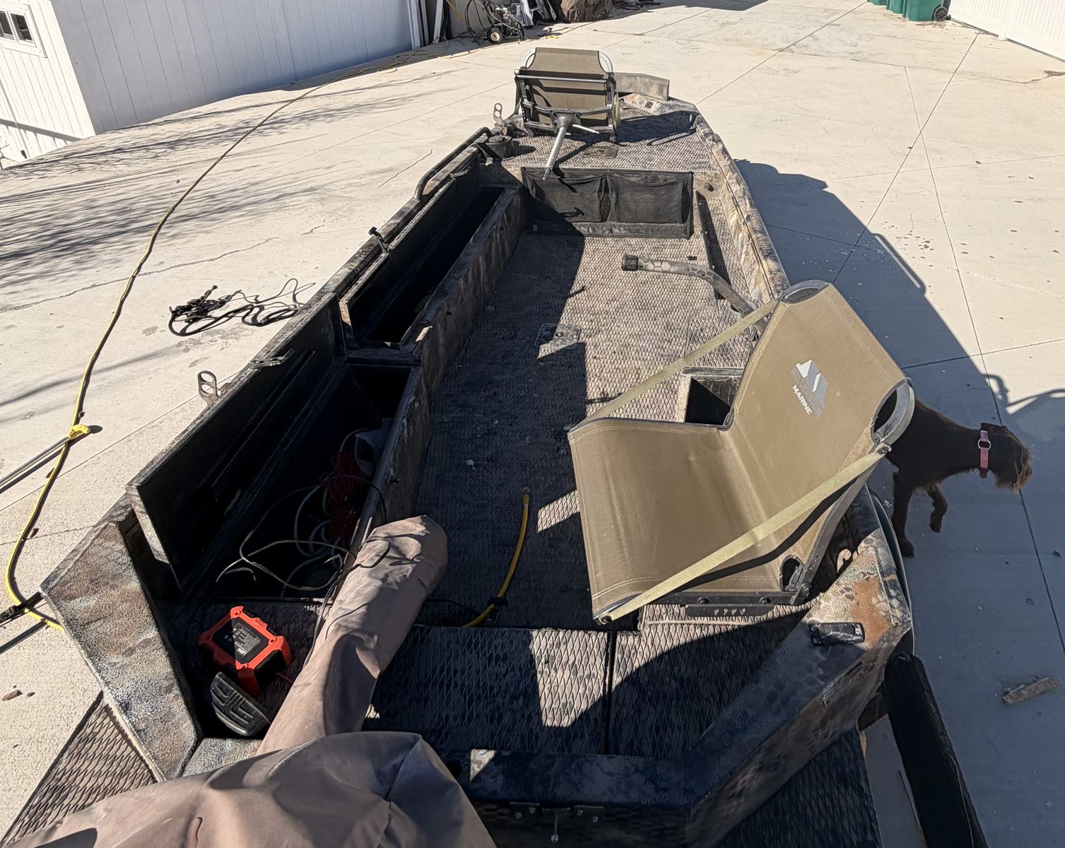 FOR SALE: 2017 Excel F4 1651– Ultimate Duck & Fish Boat Ready for waterfowl season and fishing right now — this rugged 2017 Excel F4 is a proven shallow-water platform built to perform and loaded with quality upgrades. KEY FEATURES Step-deck shallow water hull with triple taper chine and full flat floor — Rod & gun storage driver storgage box open rail to stor shells or other items Front deck fuel tank (built-in) 12 gallons. Front Navigation lights (LED). Interior LED lighting Trolling motor mount + separate power setup. Livewell and plenty of storage throughout. • NEW WJR LED front light – bright low-light visibility 2 new WJR seats WJR grab bar Interior LED lights — ambiance & function Motor is a Mud Buddy 4400 HDR Black Death with only ~4 hours on fresh motor build pushing 53 hp now Has Forward, N and Reverse Warrior prop w/ only ~5 hours use Trailer has new tire Freshly repacked barrings Lights and electrical work as they should Boat is ready to roll anytime. Only selling to save some money for a new build. Nothing wrong with motor or hull. Let me know if you have questions.