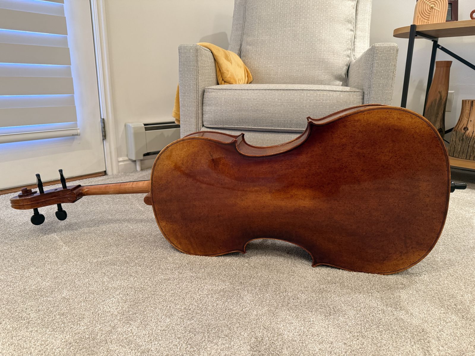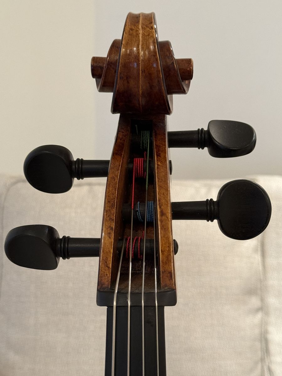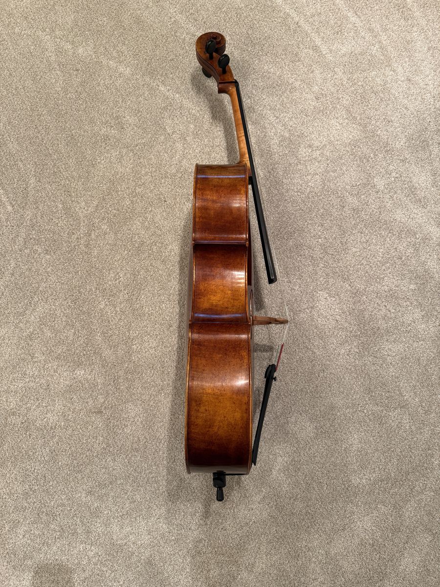 A600 2021 from Adams Days Collection. It sounds incredible and leans towards the brighter side. I have used this as a University instrument and its professor approved. As far as aging the sound has only got better, but use wise there is some normal ware. Like: noticeable chips on the front (small and totally fixable) and 1 deep but unnoticeable scratch on the upper right rib. Not planning selling my bow or case so willing to slightly negotiate. A new A600 starts at $6k+
