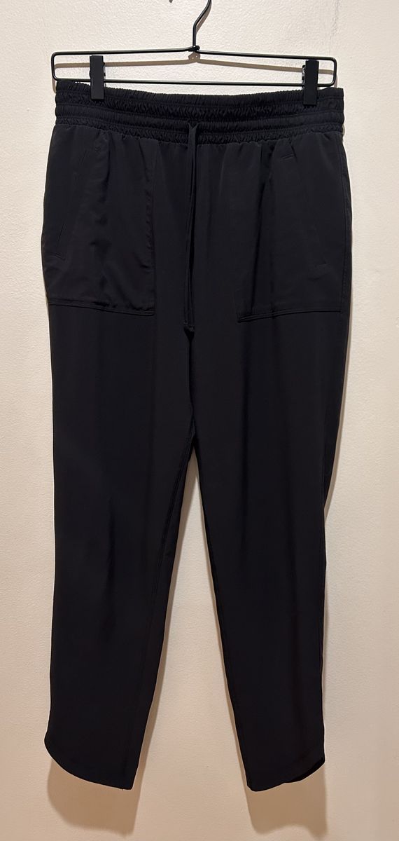 Prana Black Lightweight Athliesure Athletic Casual Pants - Women’s Size Small - with elastic waistband and waist ties, pockets, and angled ankle hems - excellent condition - pre-owned.