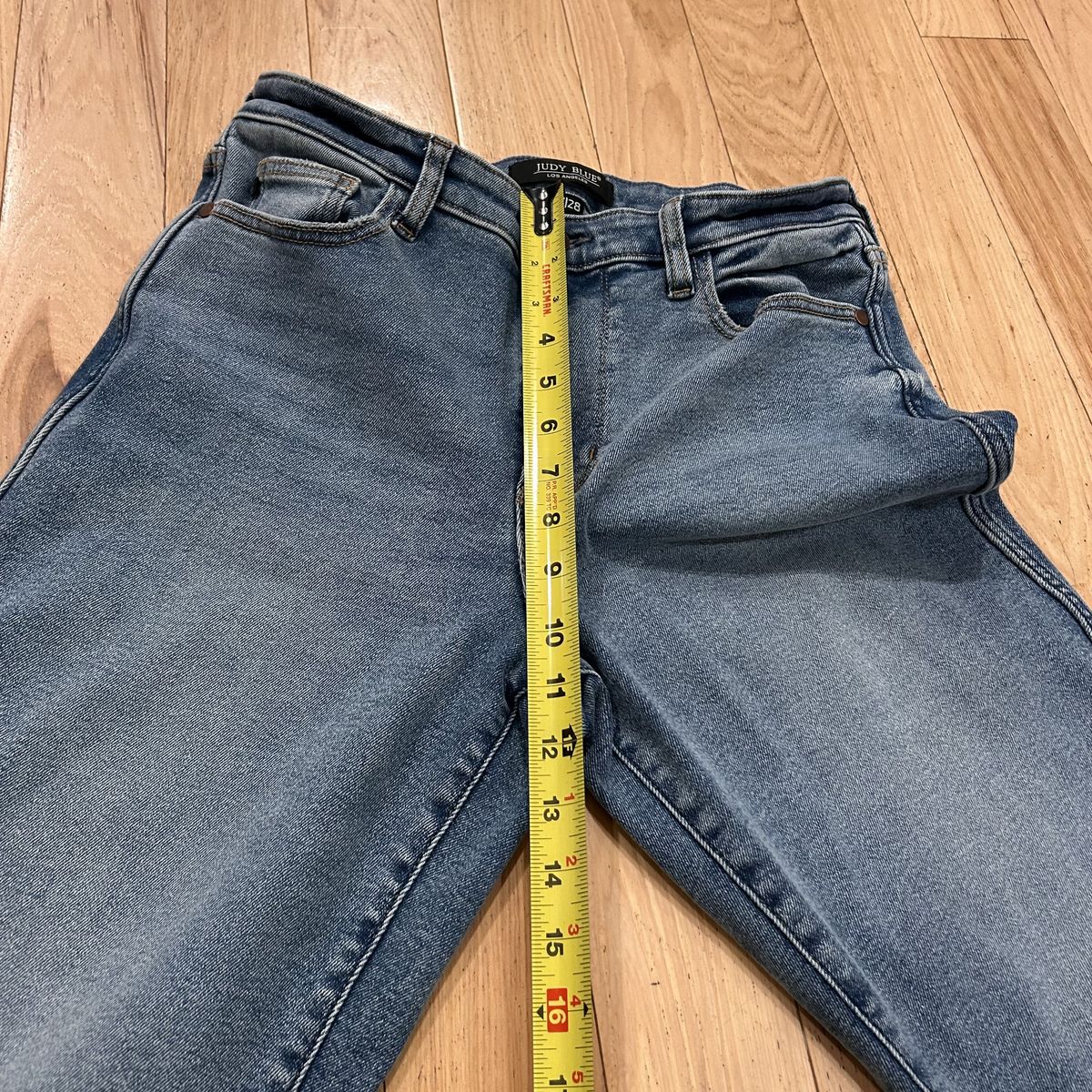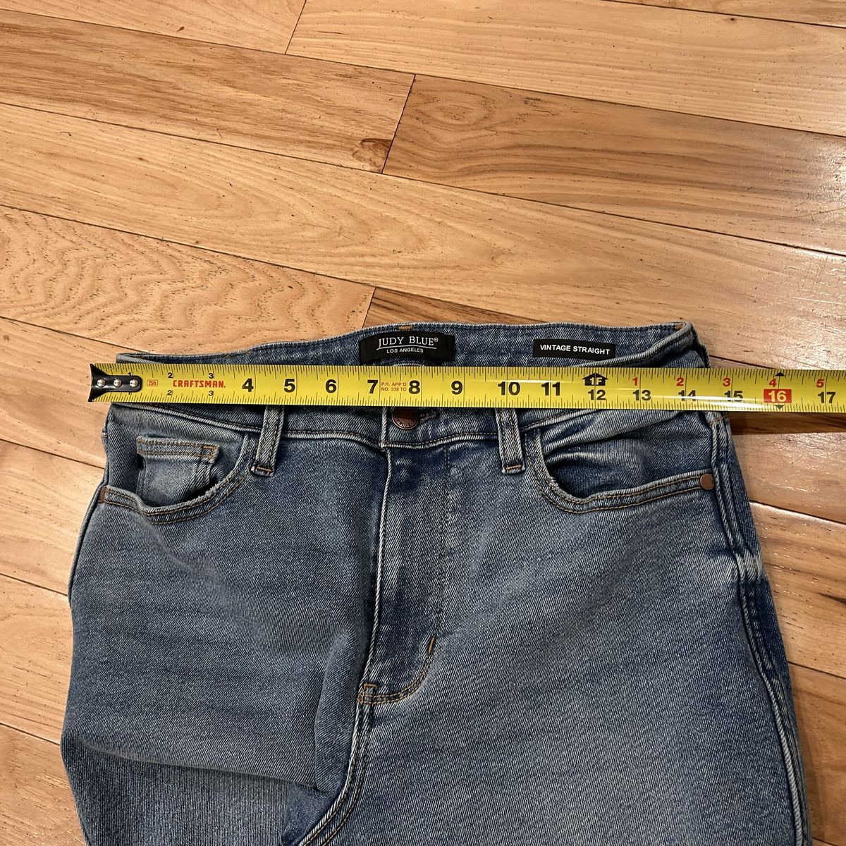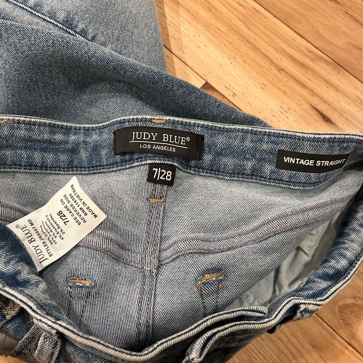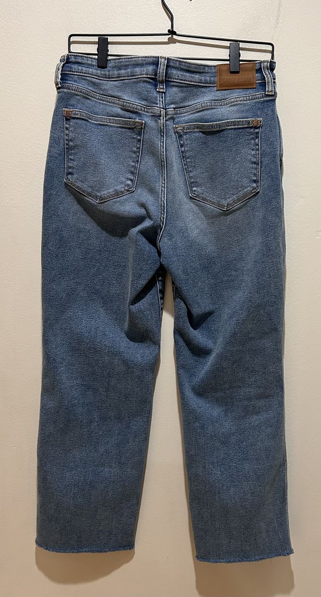 Judy Blue Vintage Straight Leg Light Medium Blue Wash Jeans - Women’s Size 7/28 - with raw hems - material has some stretch to it for a comfortable fit - good condition - pre-owned.