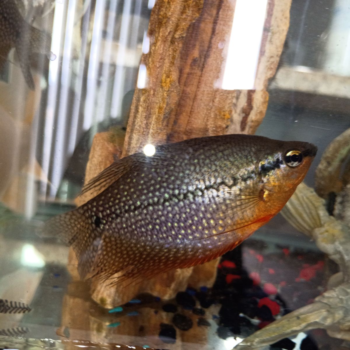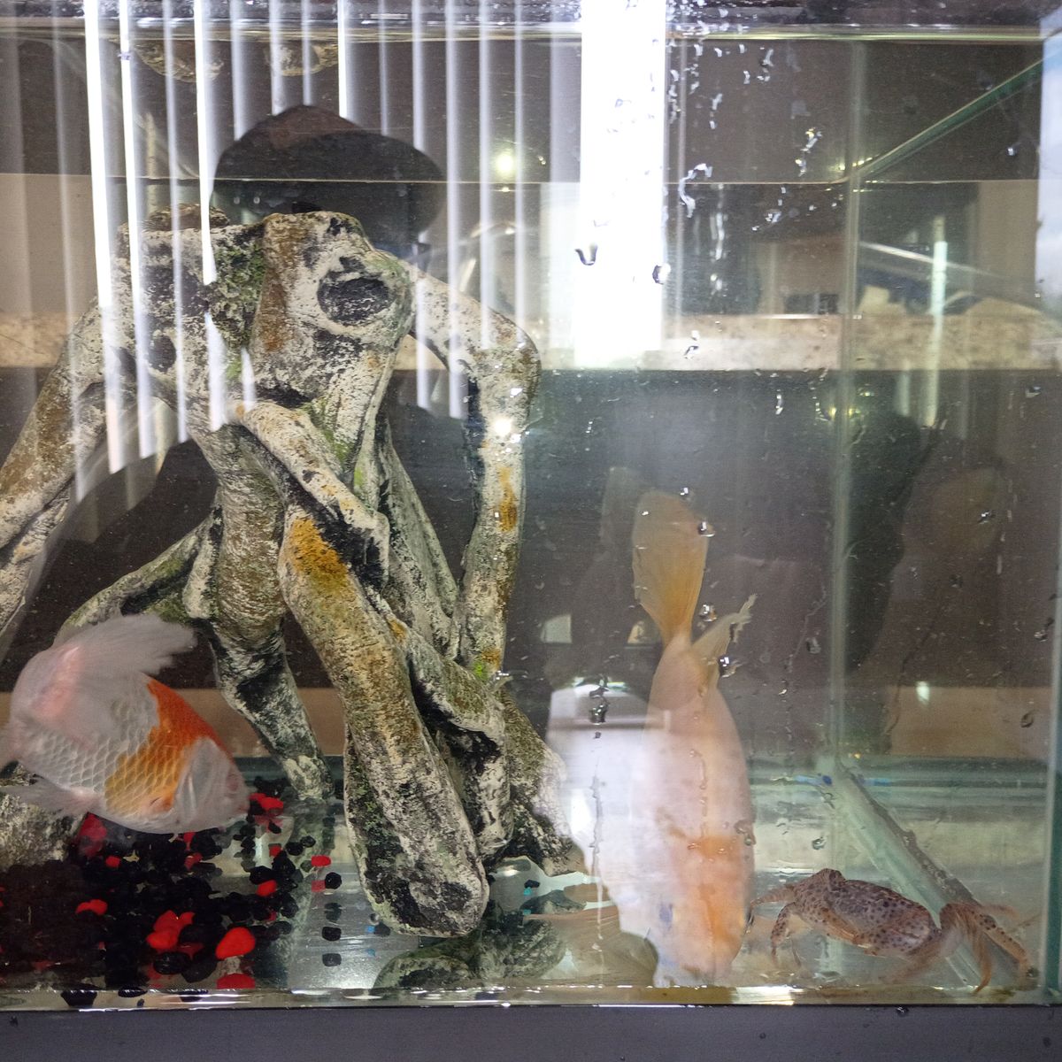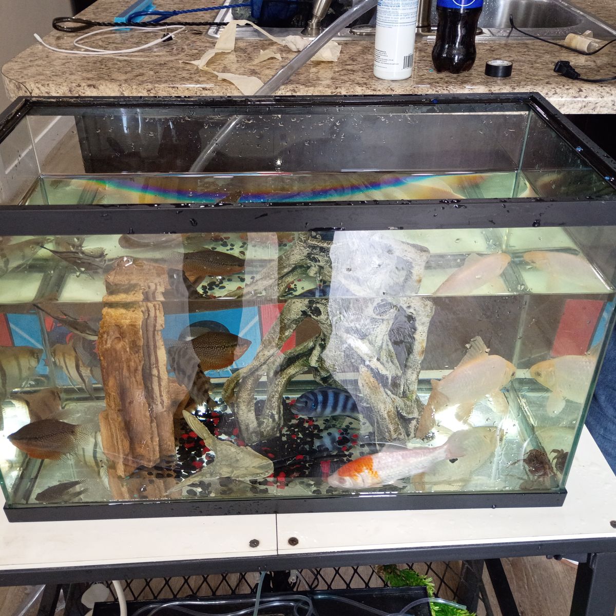 GooglePay120 gallon used fish tank with the works; pump, water purifier rocks and accessories. Also, currently have one large comet goldfish metallic White as well as three angelfish a panther crab and a sucker fish.