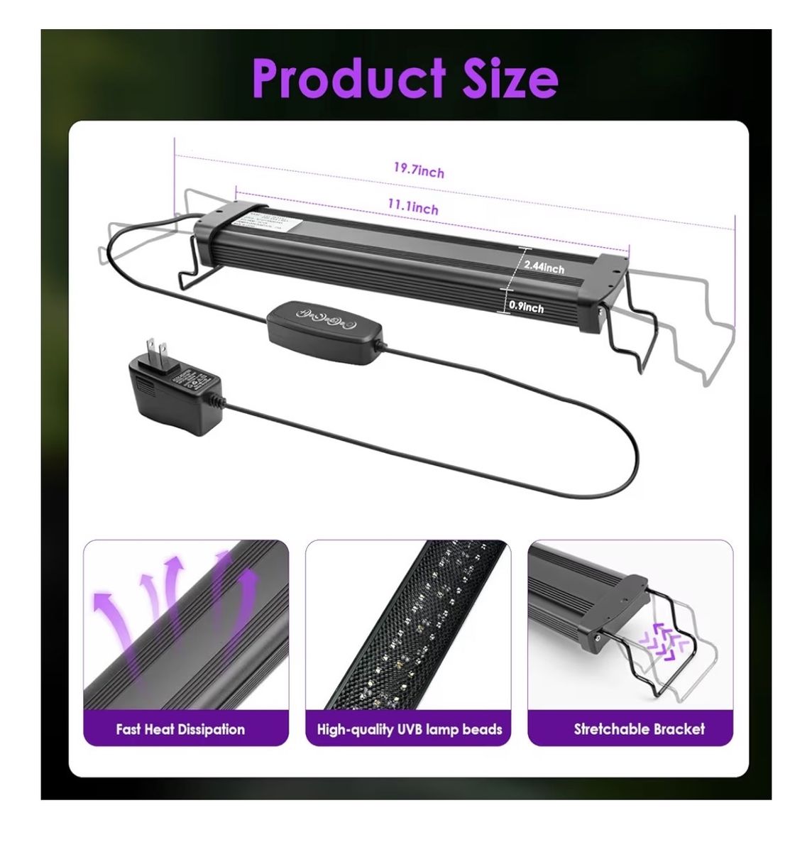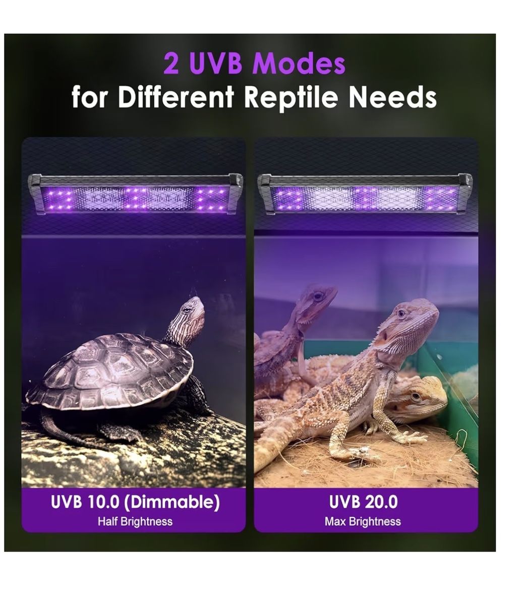 ApplePay11-Inch Dimming LED UVA UVB Light for Reptiles, UVB 20.0/UVB 10.0 15W LED Reptile UVB Light for Tropical & Desert Reptile with 3 Light Modes Option 6-Level Dimming 24-Hour Cycle Timer. Please text if interested