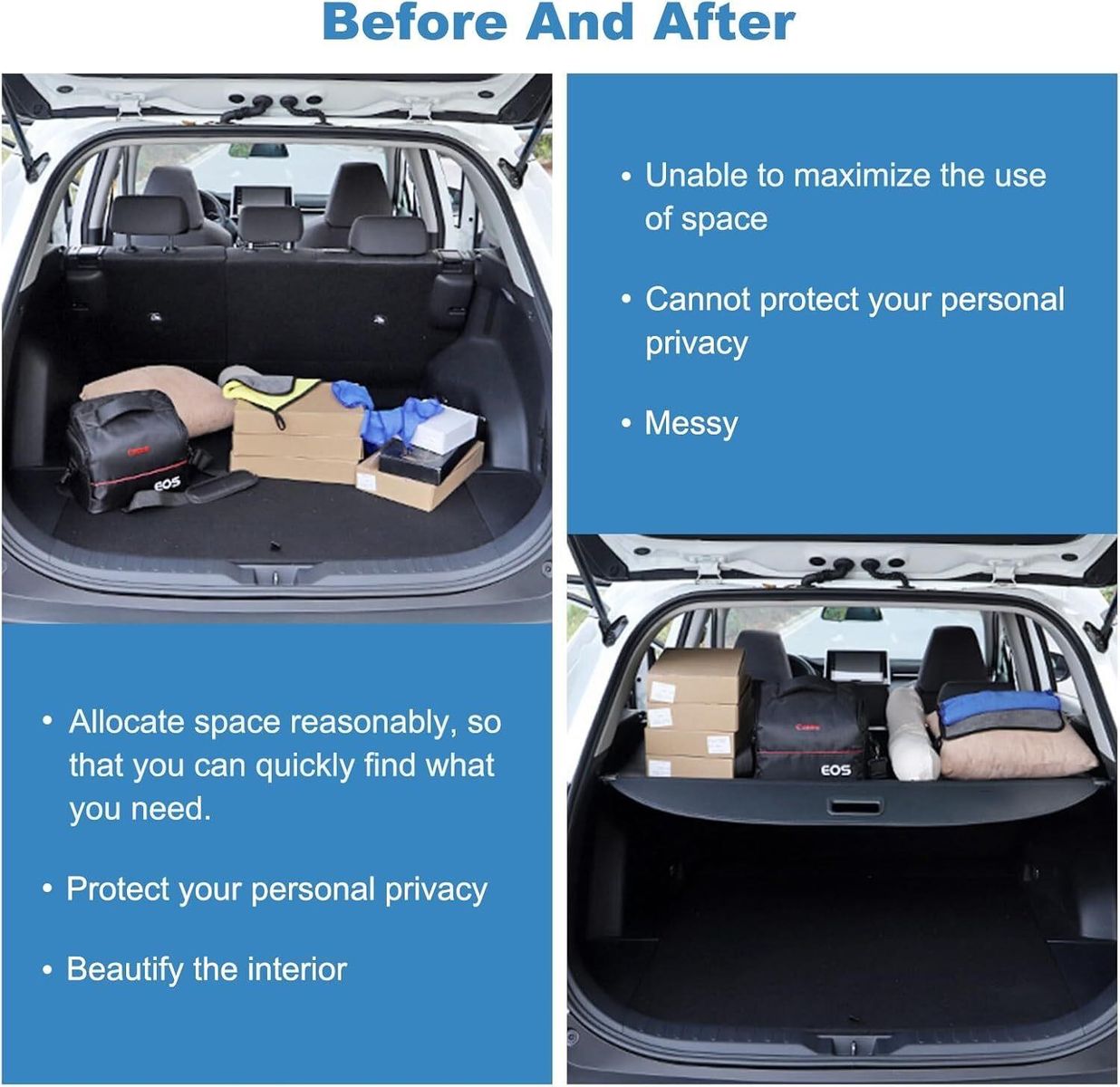 Fitment: 2019-2022 Fit for Toyota Prius 1.8L,2023 Fit for Toyota Prius 2.0L retractable cover. More for the following product description Quality manufacturing: The cargo cover shade is made of thickened aluminum alloy and high-density PVC material, which has strong load-bearing capacity, waterproofand pressure resistance Easy to install: This tonneau security cover can be assembled independently in few minutes. Tool free installation. No drilling required Save Space: This cargo cover is designed to conceal cargo while still allowing access to the rear cargo area. Flexible enough for easy storage when not in use. The rear trunk cover lid is fully retractable like a curtain, making it easy to use and remove as needed Package included: Foldable cargo cover luggage shade as pictured, durability and sturdiness.