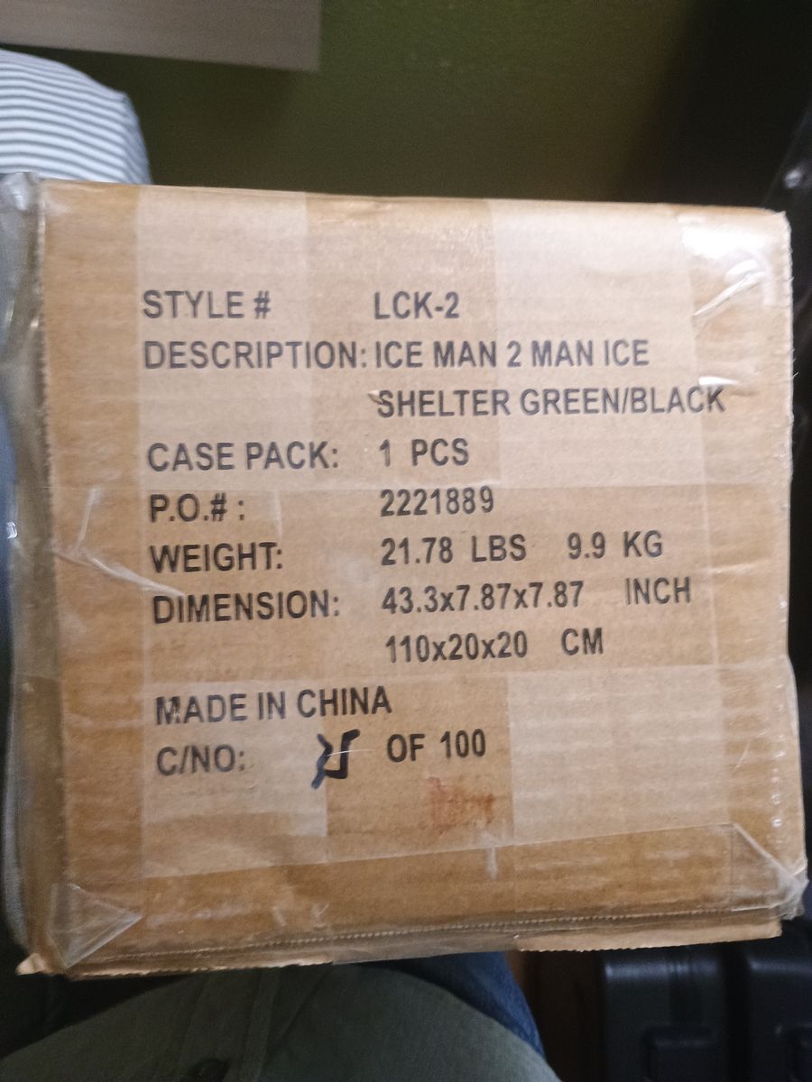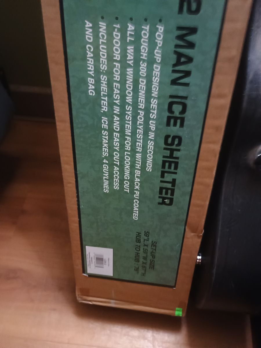 Lost creek 2 man ice shelter. Got it as a gift 4 years ago and never used it. New in box, never opened. Cleaning out the garage. Asking 120obo.