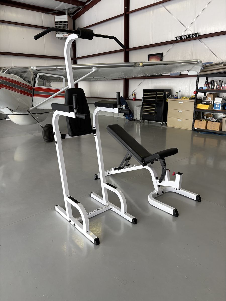 VenmoAlmost like new - adjustable weight bench with sit-up and leg attachments with 2x45 plates and a heavy duty pull-up and dip apparatus. Equipment like you see in high-end gyms. Over $1,000 new, sell both for $250.