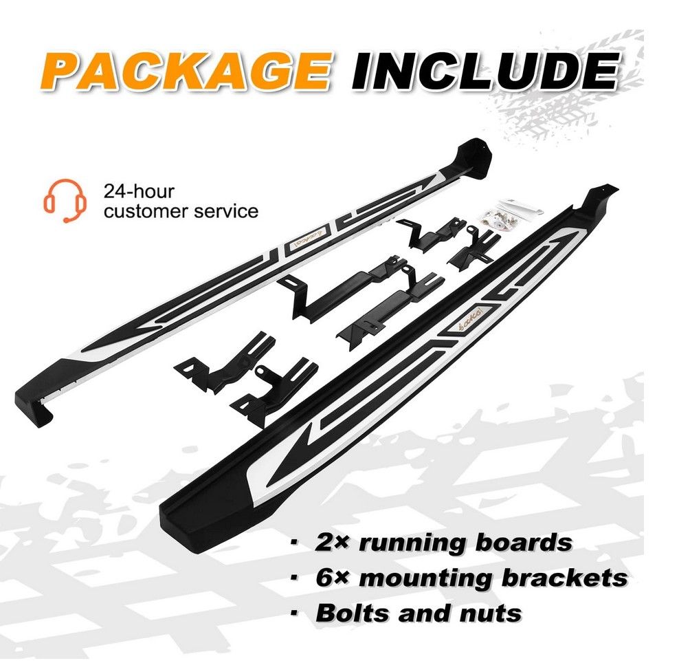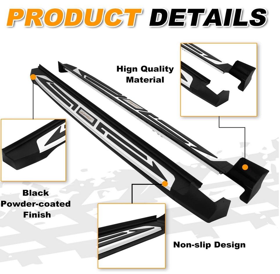 Tailored Fit: Designed fit for Ford Explorer 2011 2012 2013 2014 2015 2016 2017 2018 2019, our side steps offer a perfect fit and seamless integration, enhancing both the appearance and functionality of your car Hassle-Free Installation: No drilling required! Our side steps can be easily installed with the included hardware, saving you time and effort. Enjoy the convenience right out of the box. Enhanced Safety: Our running boards feature anti-slip design, providing a secure grip for you and your family to easily get in and out of the vehicle with confidence. Say goodbye to slipping accidents! Heavy-Duty Performance: With a weight capacity of 300lbs, our running boards are sturdy and reliable, ensuring long-lasting durability and practicality for everyday use. Stylish Upgrade: Elevate the look of your vehicle with our sleek and modern running boards. Not only do they provide functionality, but they also add a touch of elegance to your ride.