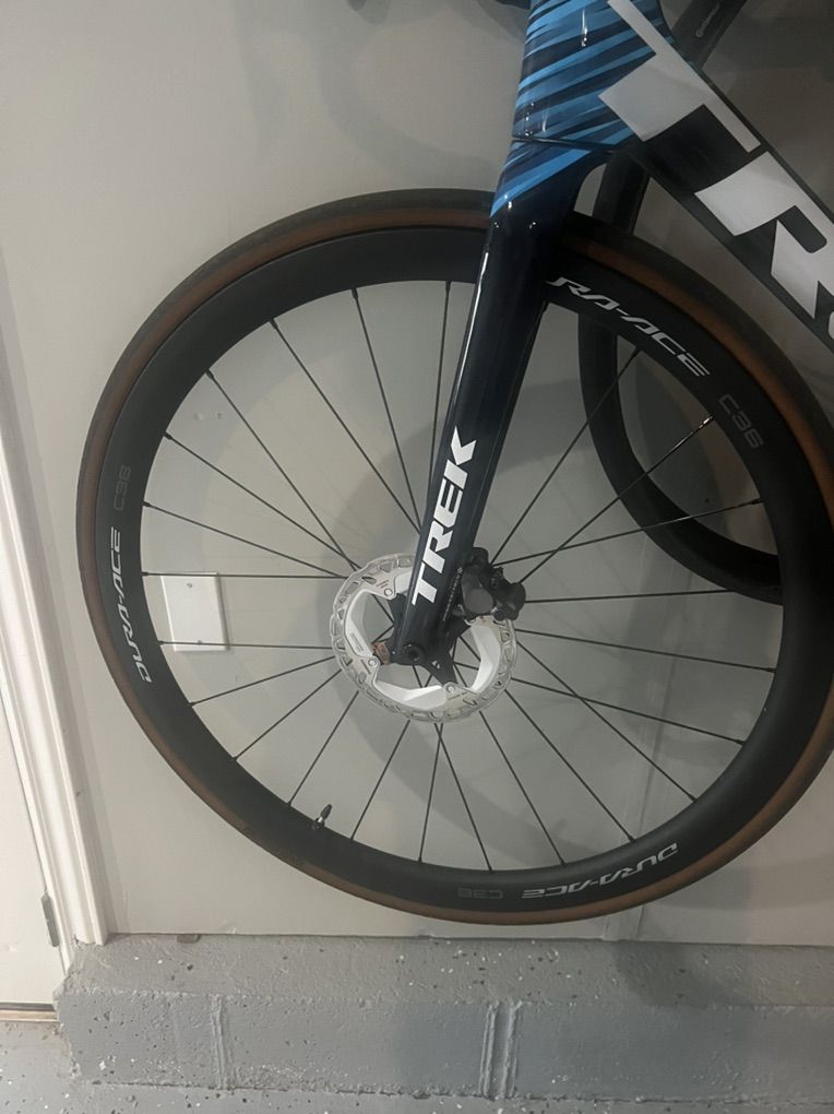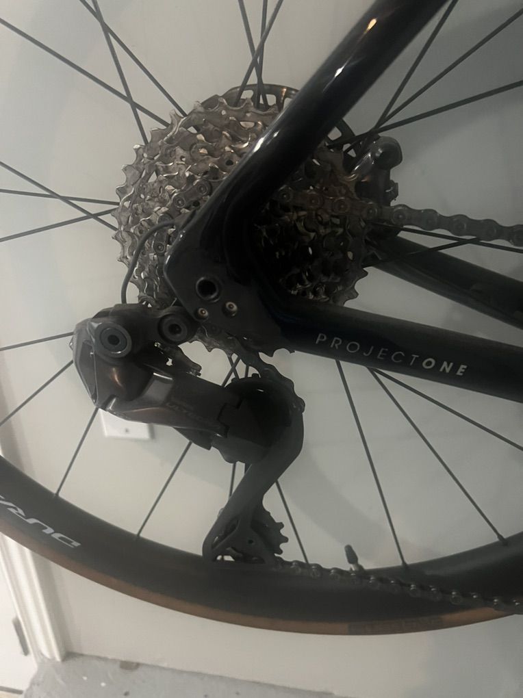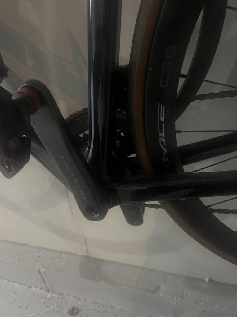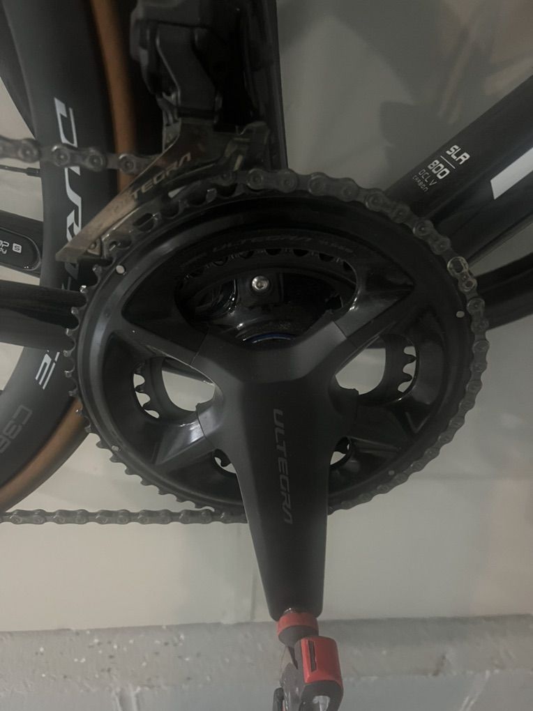 Wheels are dura ace 36. The remaining components come from a Specialized Aethos Expert I had previously. Shimano Ultegra shifting and I have some Look pedals on there right now.
