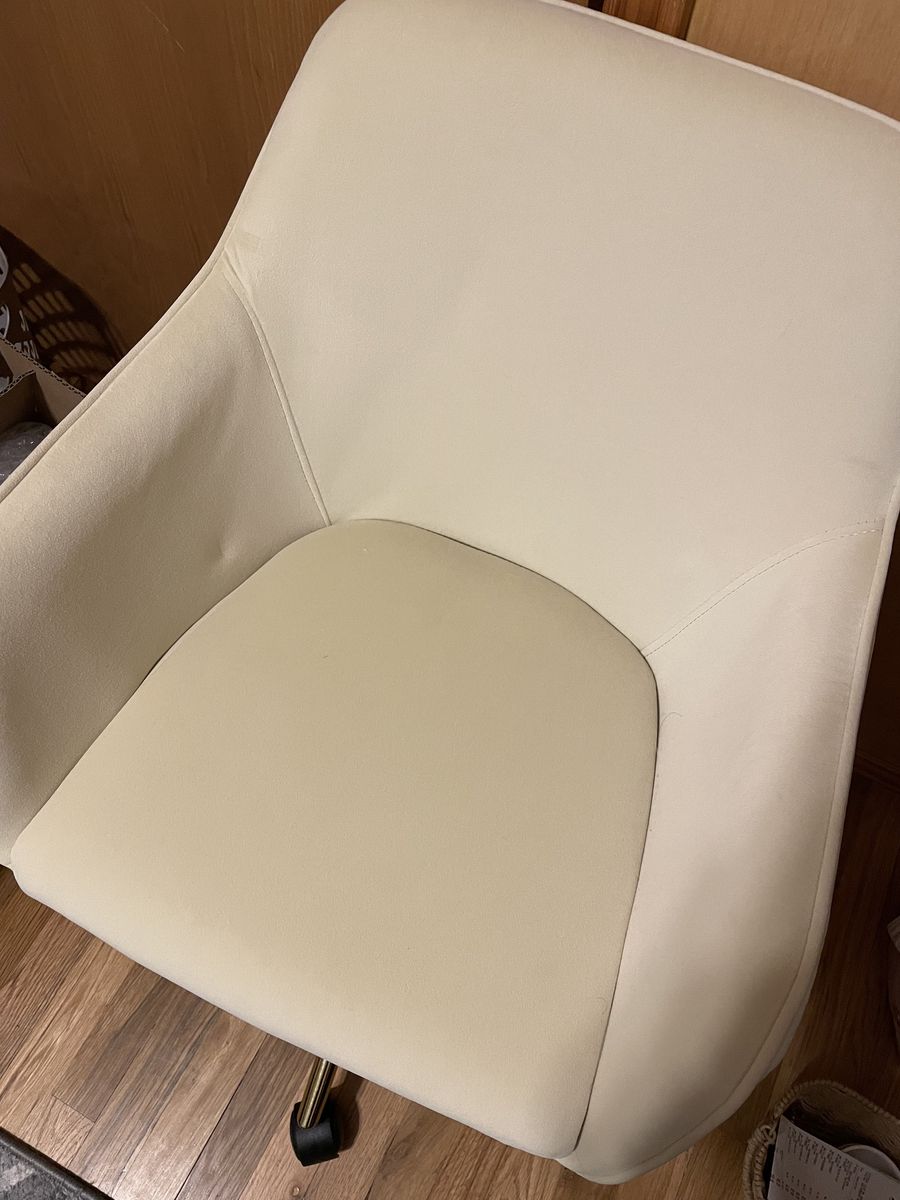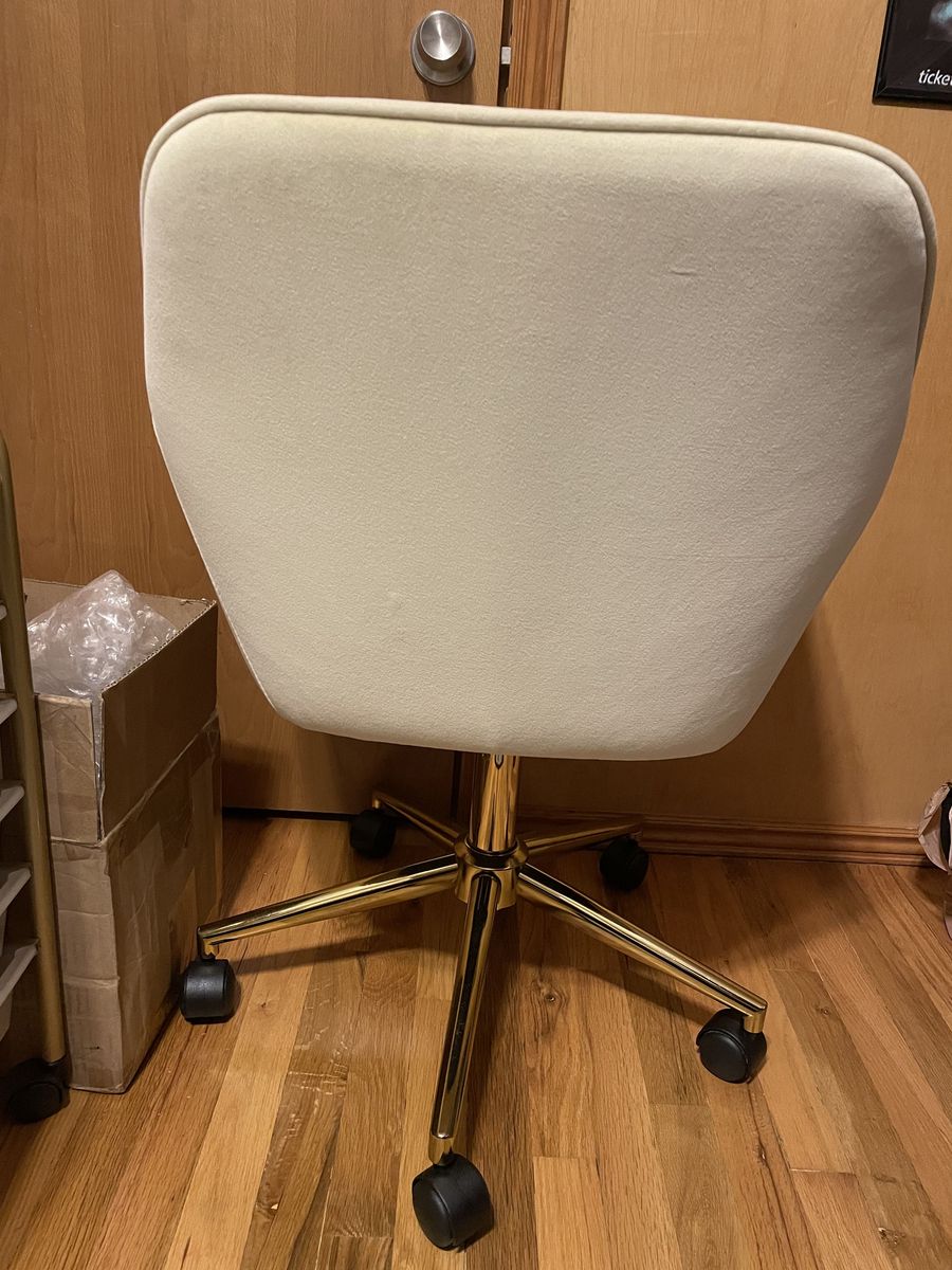Barely used!!! Adorable cream suede office chair with gold feet.