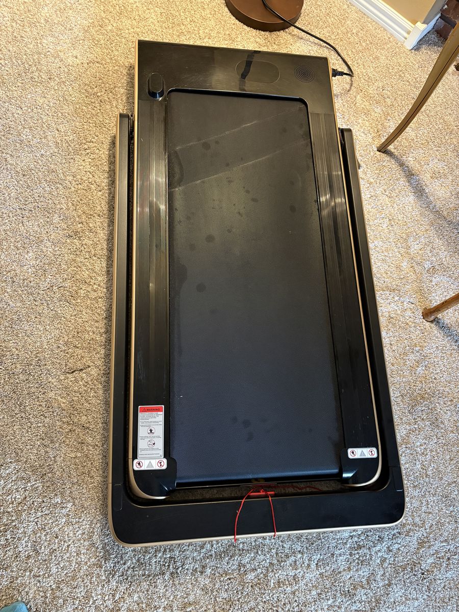 Venmo2.25 HP under desk treadmill. Booklet and remote included. 2 yrs old and recently lubricated, marks on belt.