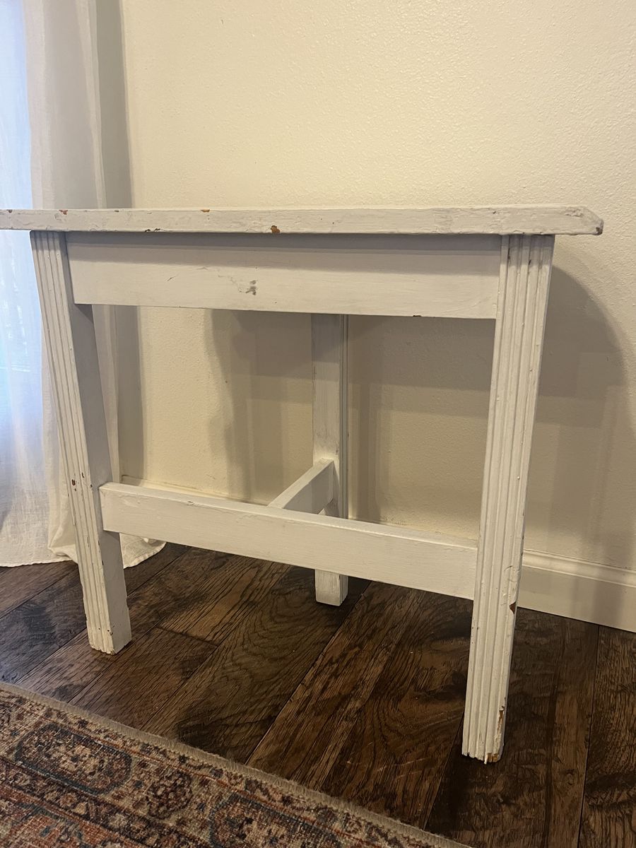 Antique Vintage white wood small table / side table / plant stand
