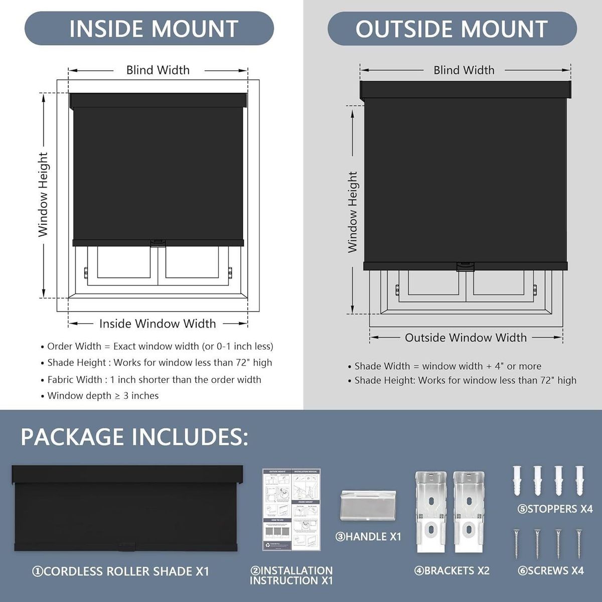 Black Blackout Roller Shades, Cordless