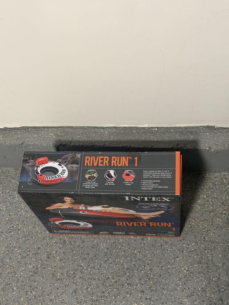 VenmoIntex® River Run® I inflatable water float is designed for high performance fun, whether you are on the lake, cruising down the river, or just lounging in the pool. For ultimate relaxation, this tube features a built-in backrest, 2 cup holders, 2 heavy duty Handles, and a mesh bottom to keep you cool! Each River Run® tube features the Connect 'n Float™ system so you can hook up to River Run® tubes, Mega Chill Coolers and other Intex® floats.