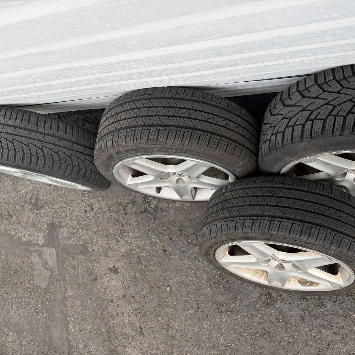 CashAppSet of 4 215/ 45R17 tires(mixed brands), one of which has an inch long gash and is unusable.