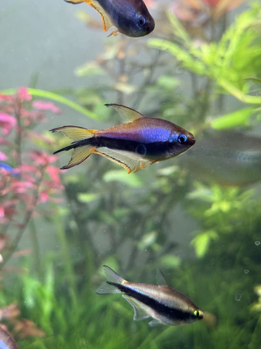This group has been one of my absolute favorites to have in my tank. They have spawned and produced babies multiple times the last year that I’ve had them. From the females stunning green eyes to the beautiful bright blue eyes and gorgeous purple, black, and yellow display from the males- who wouldn’t want to add these beauties to their tank?!?! They’re great community fish and have done great from small celestial pearl danios and scarlet badis to the big Pearl Gouramis. They love planted tanks as it feels more like home to them and they’re more keen on spawning in planted tanks. Not to mention their colors look AMAZING against the greenery! They have a very curious personality and are always the first ones to greet you when it’s time to feed or to say hi to the new member/members of the tank. If you want to add a touch of class and beauty to your tank- do not sleep on these beauties