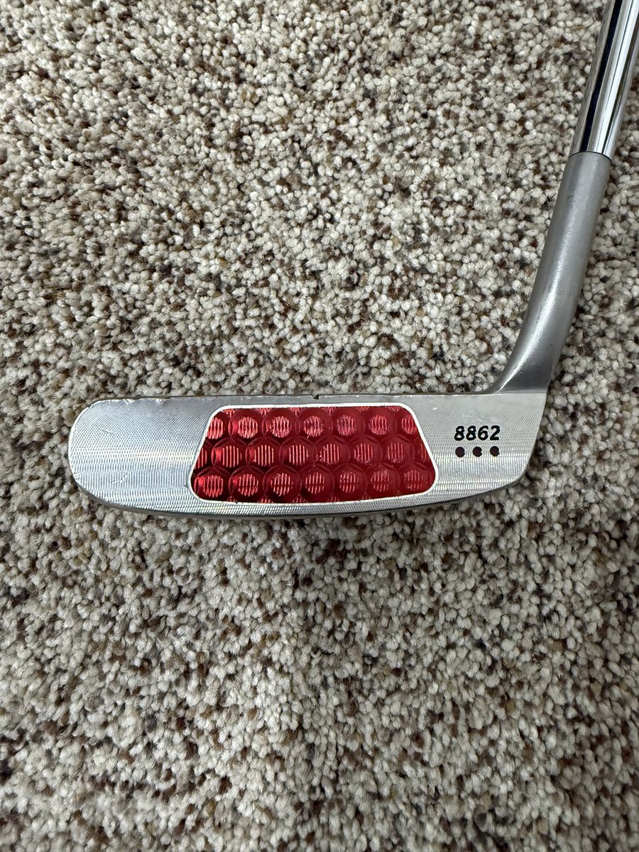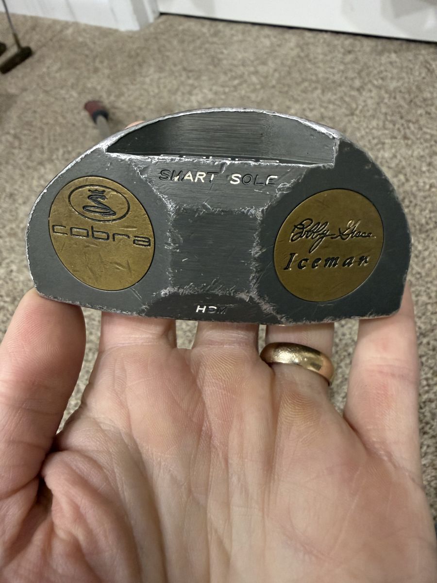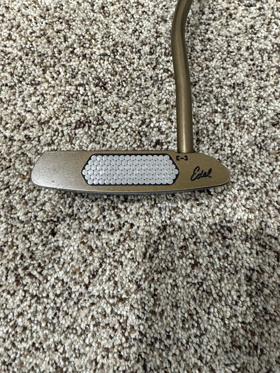 Edel E3 with Evnrol Gravity Grip ($50) Callaway Big Bertha Blade ($20) Cobra/Bobby Grace Iceman ($20) Odyssey DF 440 ($10) Wilson 8862 ($60) Ping Ally SN ($20) Bobby Grace Fat Lady Swings ($20) Ping Zing 2 ($30) TaylorMade Nubbins B15s ($30) YES C-Groove Hannah ($30)