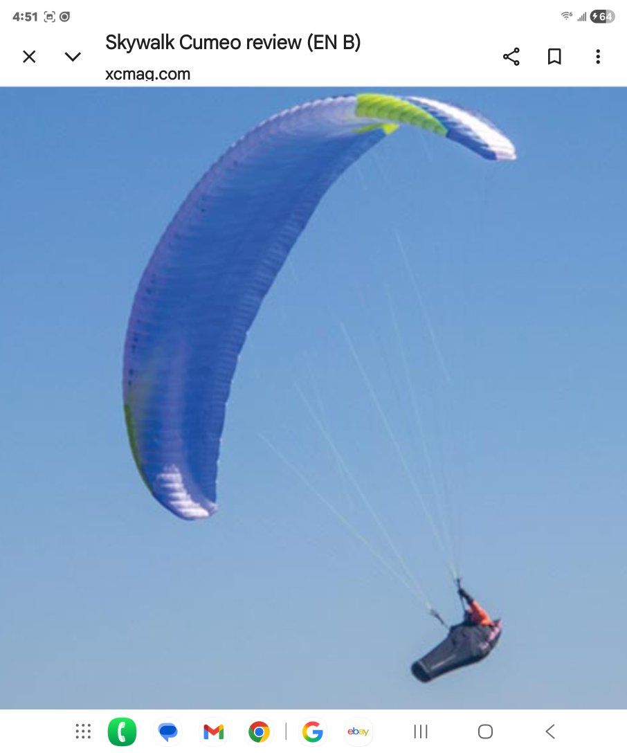 It’s a lightweight version of the Chili4 – an impressive 20% lighter – with the same performance and flight characteristics. Was 1200.00 NOW 1000.00 CASH. 2019 Skywalk cumeo xxs 55-75 kg 121-165 lbs 130 hours Flies great, has the jet flap technology. Amazing wing. Taken very well care of, selling for a friend that lives in N. Ogden. The wing is here in Lehi. Thanks