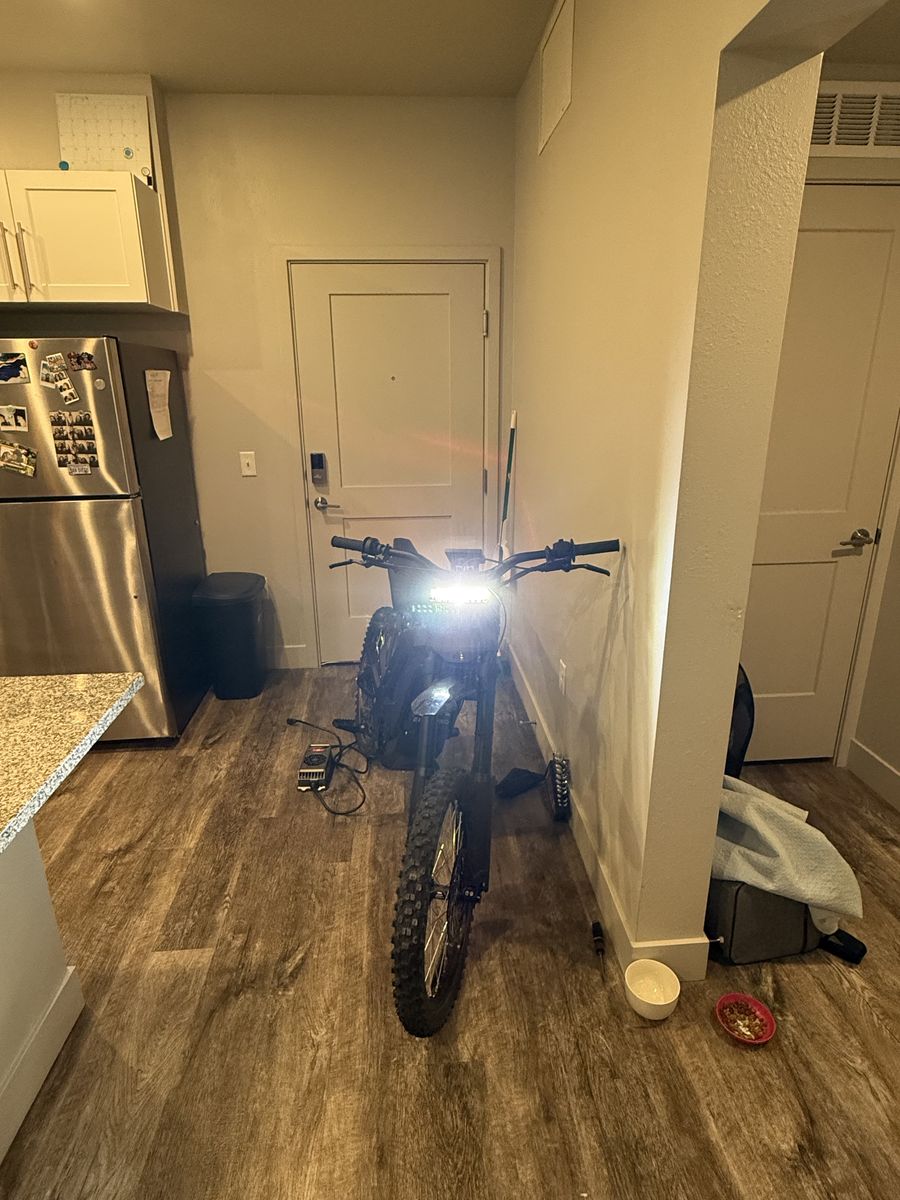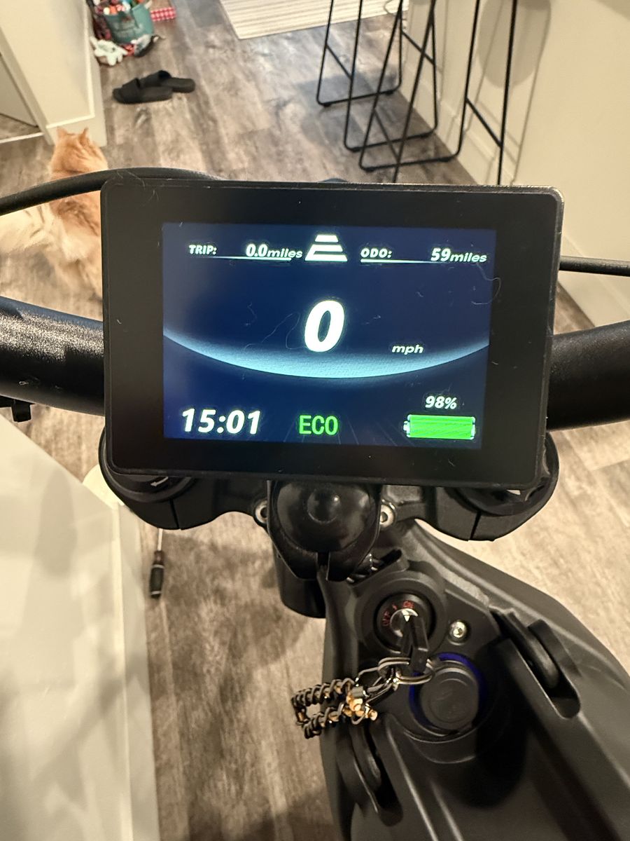 Only rode it 4 times total. I found out quickly it was too fast for me! It can go 55 mph and all the way up to 60 in turbo mode! It only has 59 miles! Most of this bikes life has been spent inside my living room. Like I said brand new! It’s an amazing machine that is ready to rip!