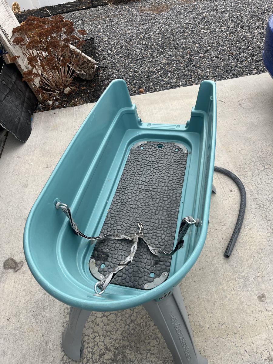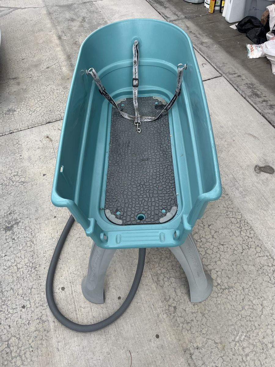 ApplePayeasy to shower dogs, you can tie it to their collar and makes it really easy, there is a drain hole with a hose and it is very light and easy to move