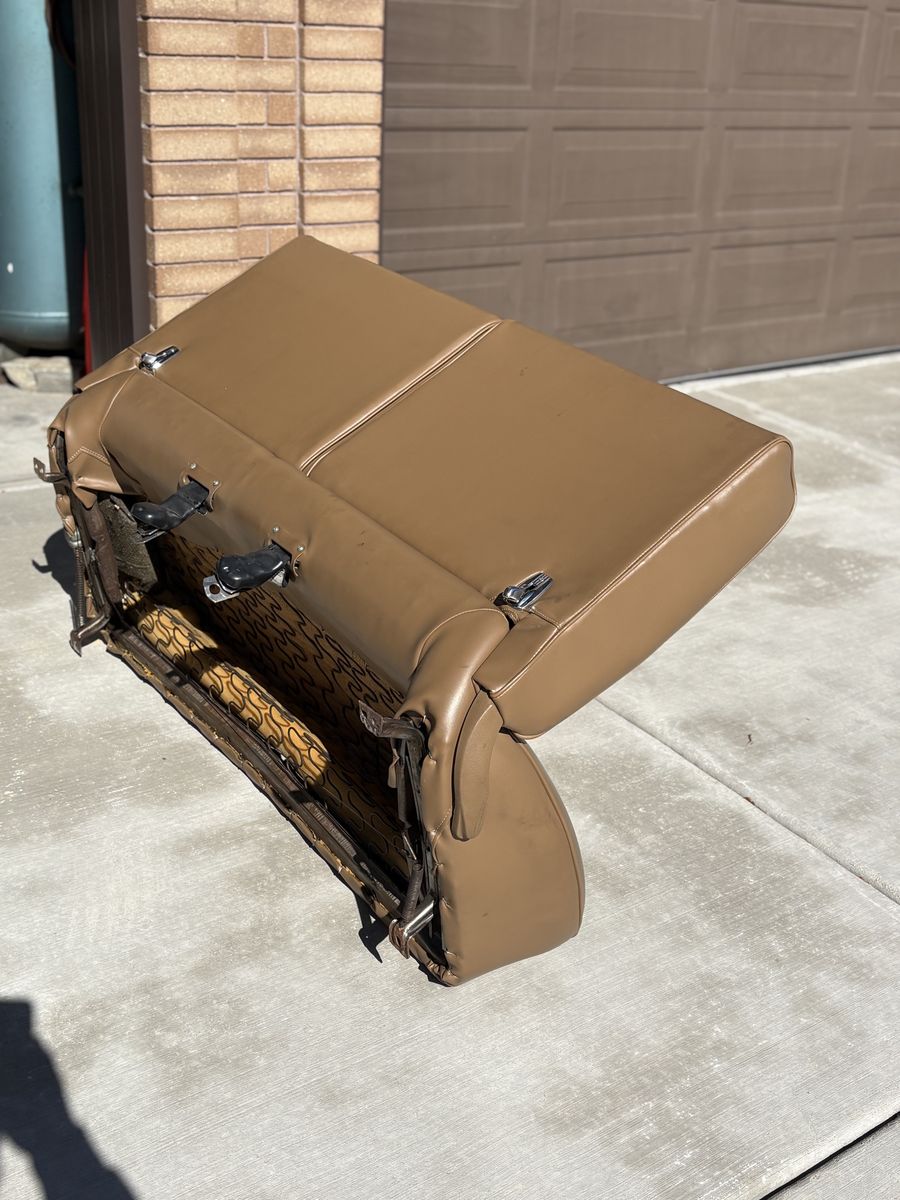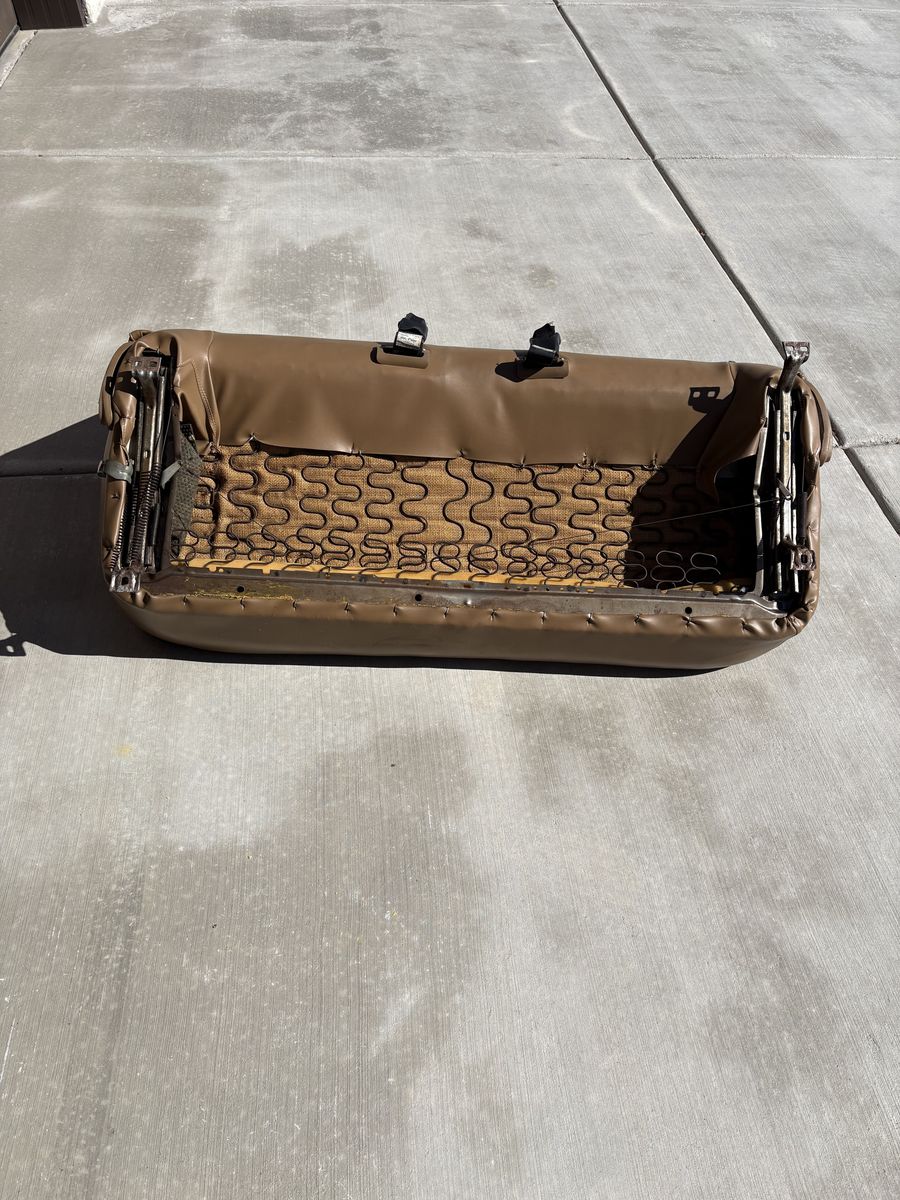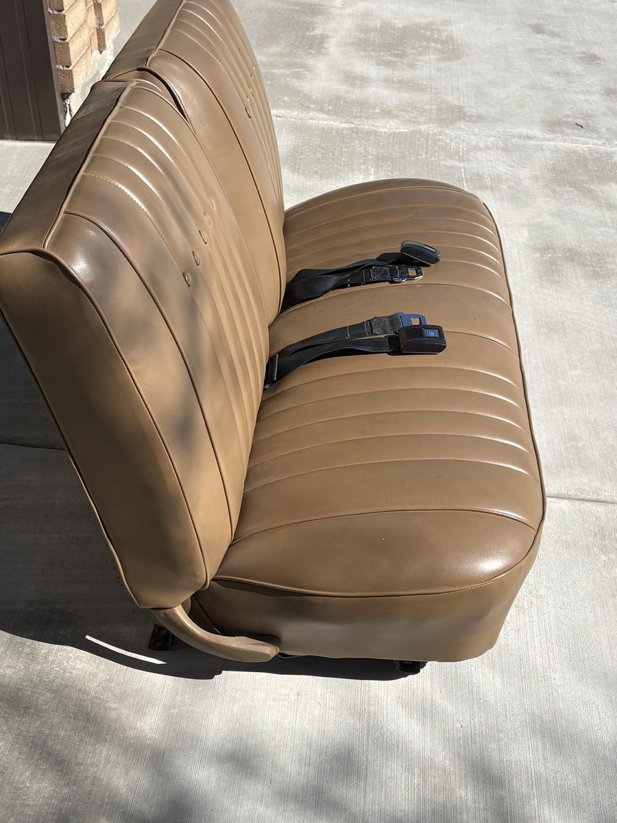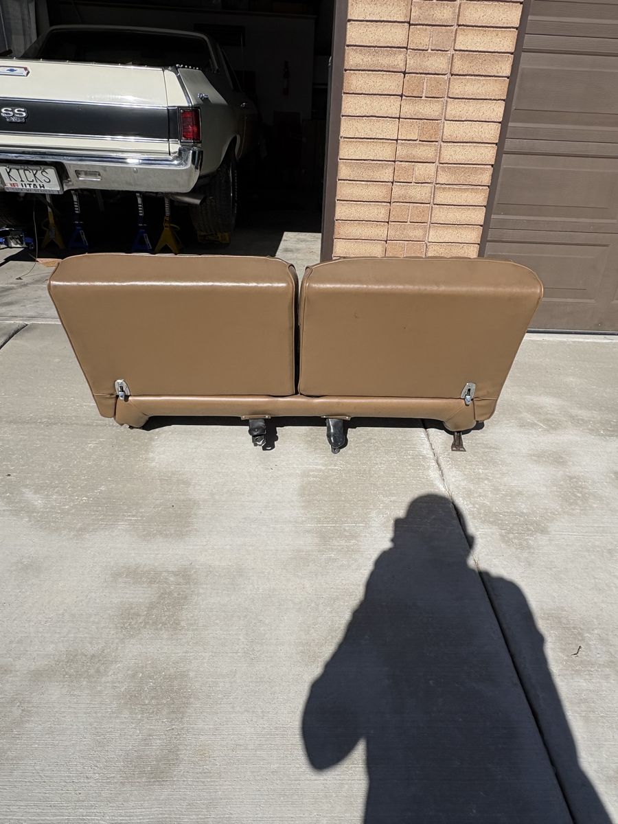 1968 elCamino bench seat. Refurbished to show car original condition. Seat, sliders & mounts like new. Springs, foam backing & frame like new. GM FACTORY ORIGINAL SAND BEIGE SIERRA COLOR. $ 350.00 IDEAL FOR RESTORATION PROJECT. Message 801-759-4352
