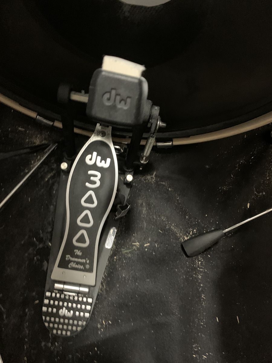 7 piece mic kit, including stands, DW3000 pedal, Pearl pedal, heavy duty cymbal stands
