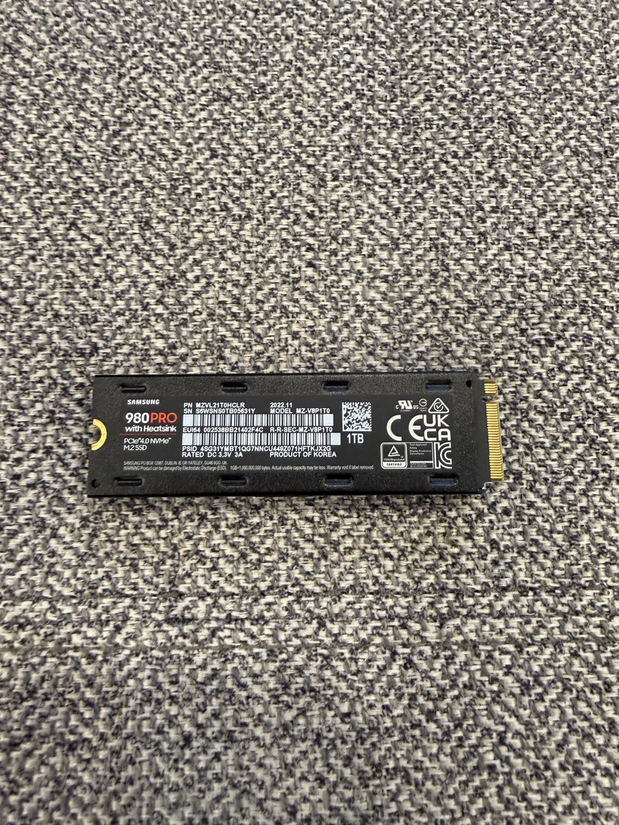 ApplePaySuper fast Samsung 980 PRO 1TB NVMe M.2 SSD. This is a PCIe 4.0 drive, great for gaming or video editing. Has crazy fast speeds, up to 7000MB/s read and 5000MB/s write. Model MZ-V8P1T0BW. Just the SSD, no box.