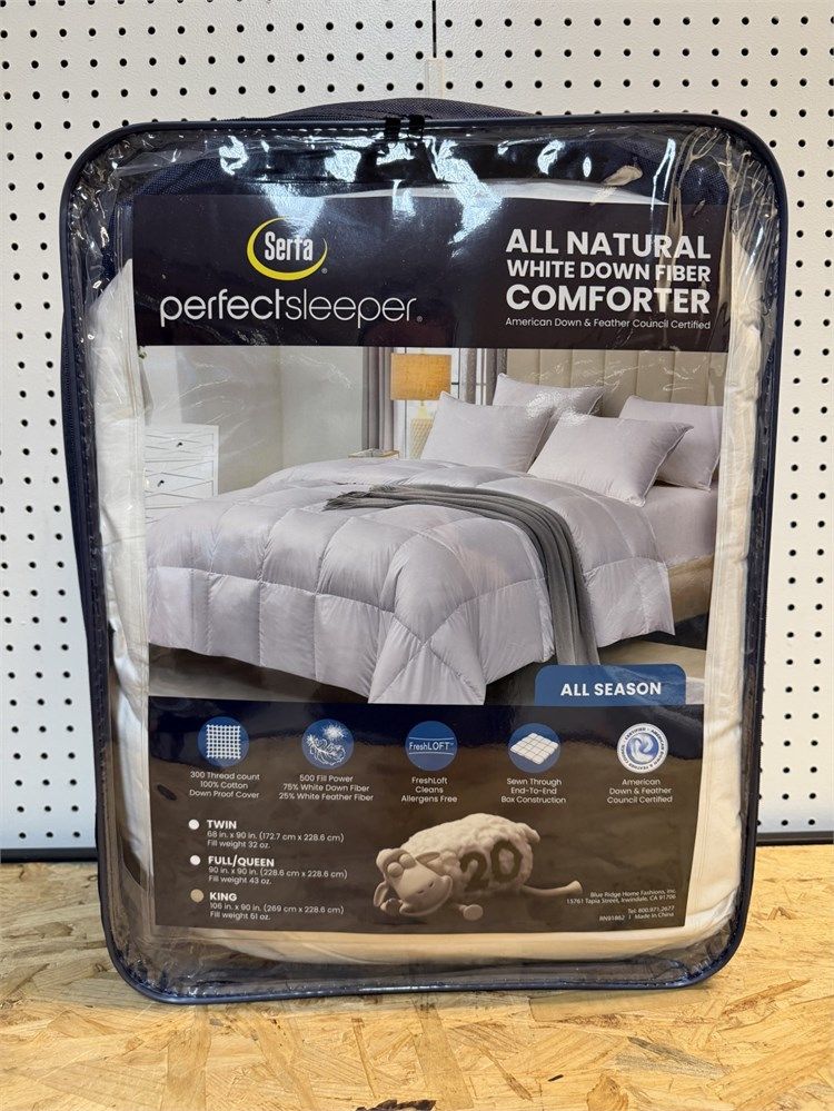Serta Feather Down Comforter Full/Queen Size, Ultra Fluffy Lightweight Duvet Insert with Corner Tabs, Microfiber Cover All Season White Comforters, Skin-Friendly, 88"x88"
