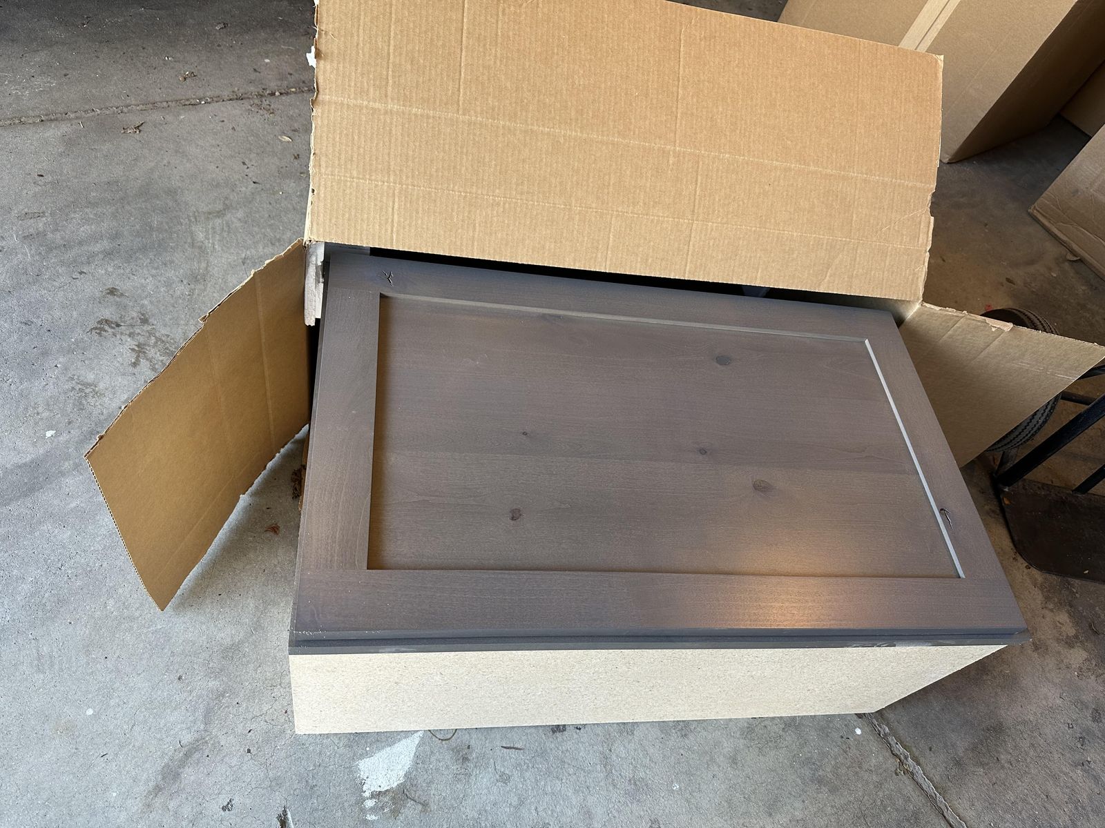 Venmo20 cabinets total - will fit full kitchenette & bathroom (57"-one sink + 2 drawer banks) Can send drawings & sizes to your email. Shaker style, gray, knotty alder. Soft-close hinges, plywood dove-tail drawer boxes. Retail: $5900.00