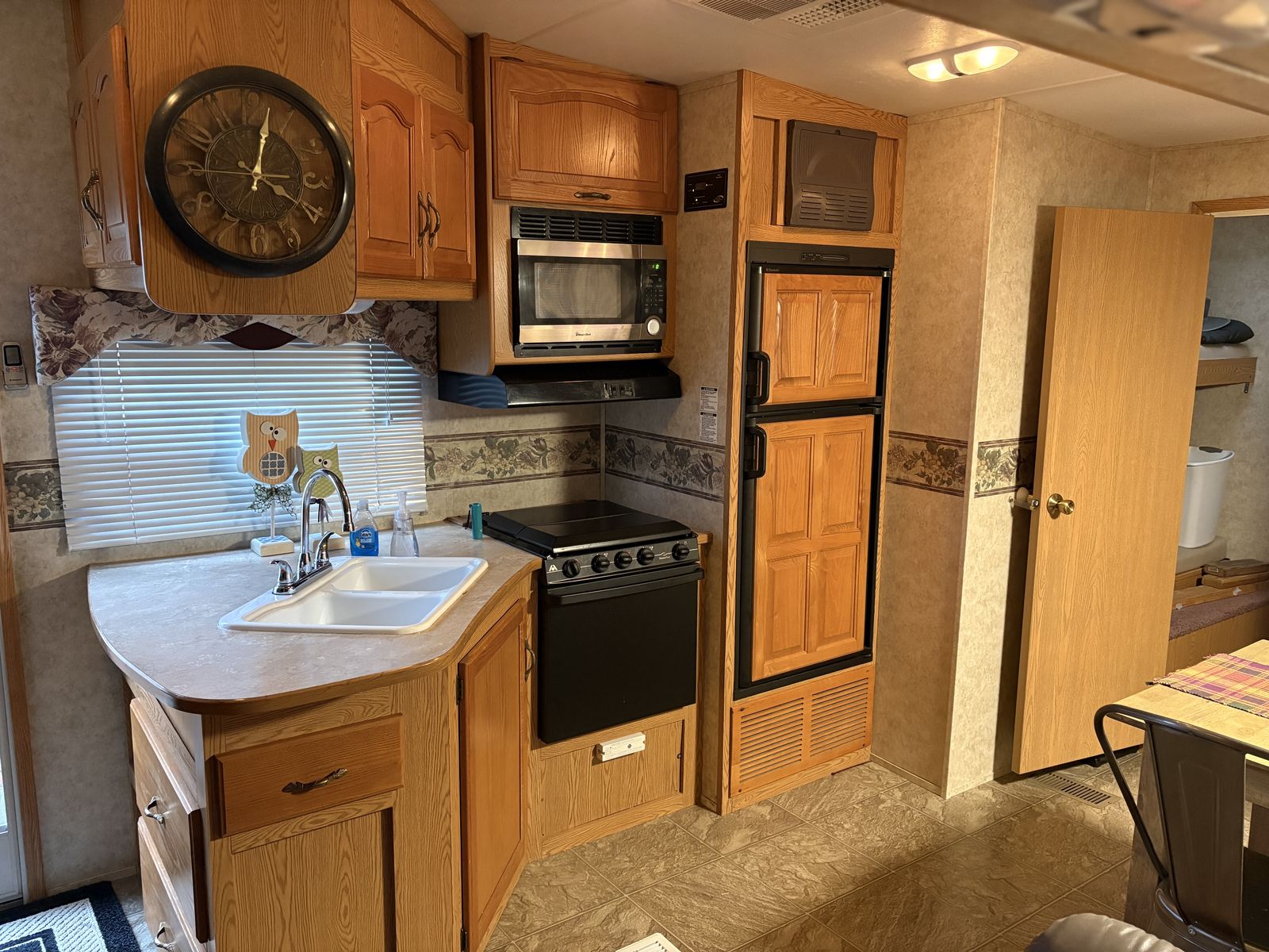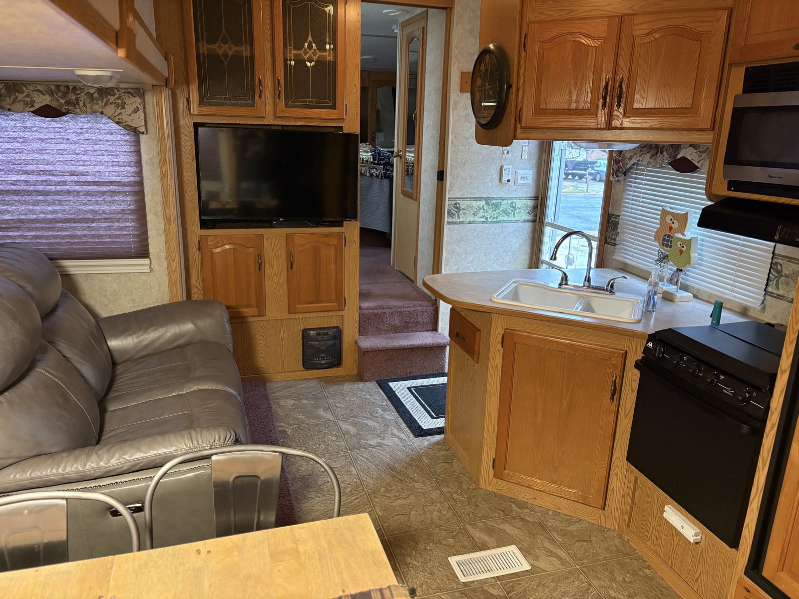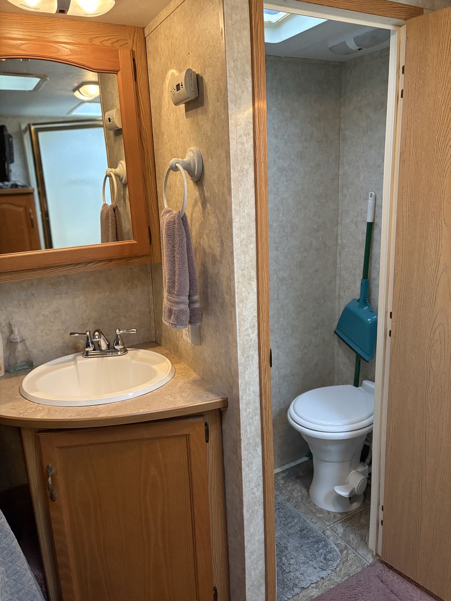 2005 Keystone Cougar 281EFS 5th wheel trailer. Queen mattress. Normal mattress, not the usual RV mattress. Bunkhouse. Reclining leather couch. Updated kitchen table. Polar package. Includes enclosed/heated underbelly and extra insulation in the floor and roof. Solar panel with inverter. King Tv antenna. Rear “garage” for extra storage. Tires are only a few years old and in good condition. Everything is in good working condition.