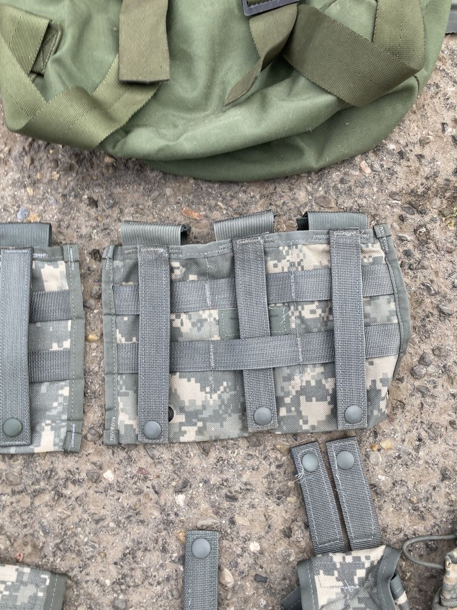 Genuine military gear tote, contains everything shown! So much to list I would have to break this book into chapters. New-lightly used on all items. Purchased separately would cost you well over a grand. Highlights: full assault pack (with all the accessories), XLarge framed and strapped ruck sack pack, gear vest with multitude of customizable accessories, drop leg pistol holster, mag packs (over 12 capacity)(AR and pistol). Tools, camel back, sleep mat, etc. etc. etc. Multiple available Text 801-759-4352