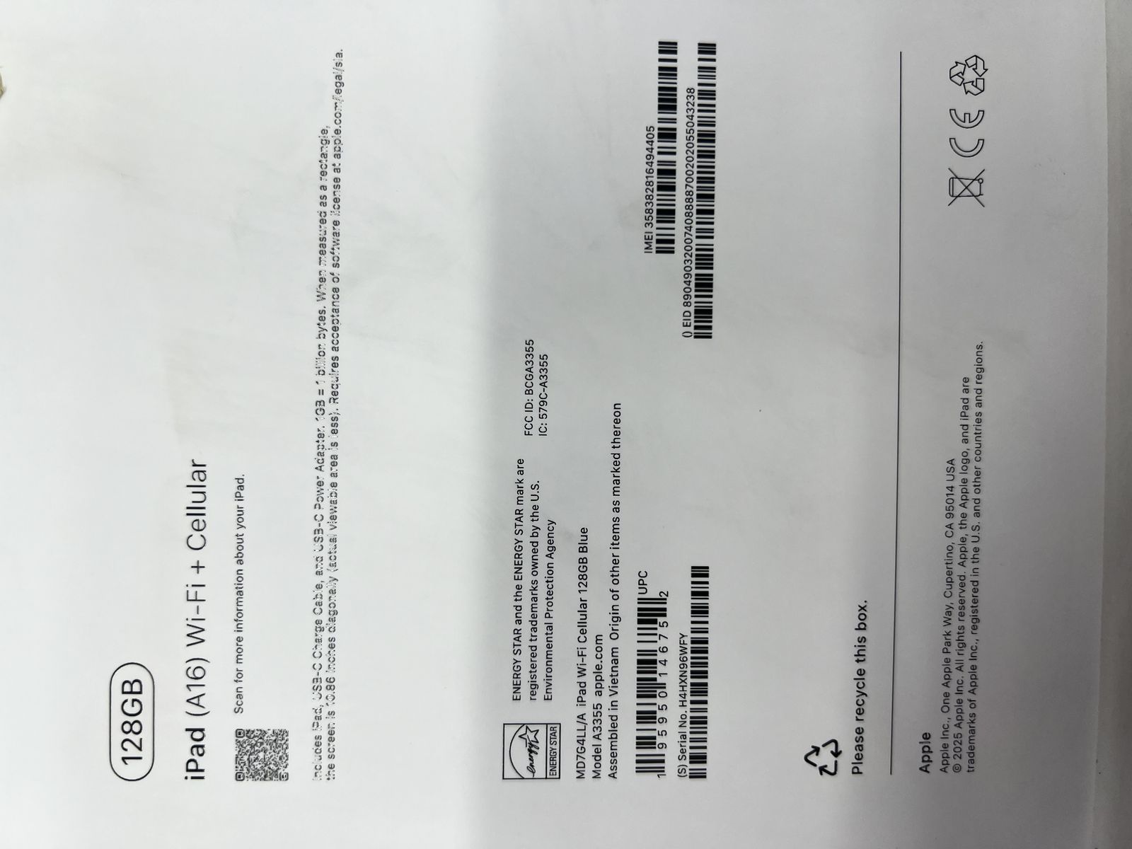 Works with only Wifi, 128GB, Blue Color, Brand new in box, Open box